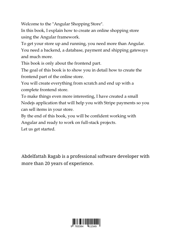 Hello, I am Abdelfattah Ragab, a professional software developer with more than 20 years of experience. I am an expert in Angular, CSS, graphic design and all web related technologies. I have published numerous books on modern CSS layouts and Angular as well as complete business solutions for e-commerce and the like. I hope you enjoy my books. With kind regards.