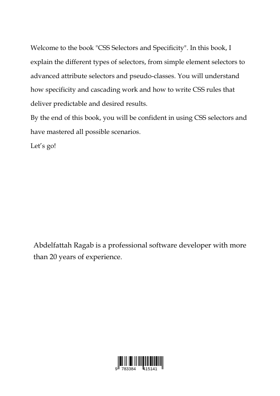In this book "CSS Selectors and Specificity" we will learn about the different types of selectors, from simple element selectors to advanced attribute selectors and pseudo-classes. We will understand how specificity and cascading work and how to write CSS rules that deliver predictable and desired results.