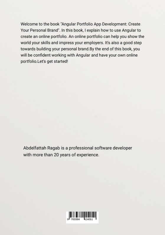 In this book you'll learn how to create an online portfolio application with Angular.Building a personal brand is important for your online growth and career.In this book, you'll learn how to create an online portfolio application to showcase your talent to the world and impress your potential employers.We start from scratch and build everything together. By the end of this book, you'll be confident working with Angular and creating an elegant and impressive portfolio to showcase yourself online.We will use the latest Angular technology v19.2, NgRx SignalStore and Modern CSS Layouts.