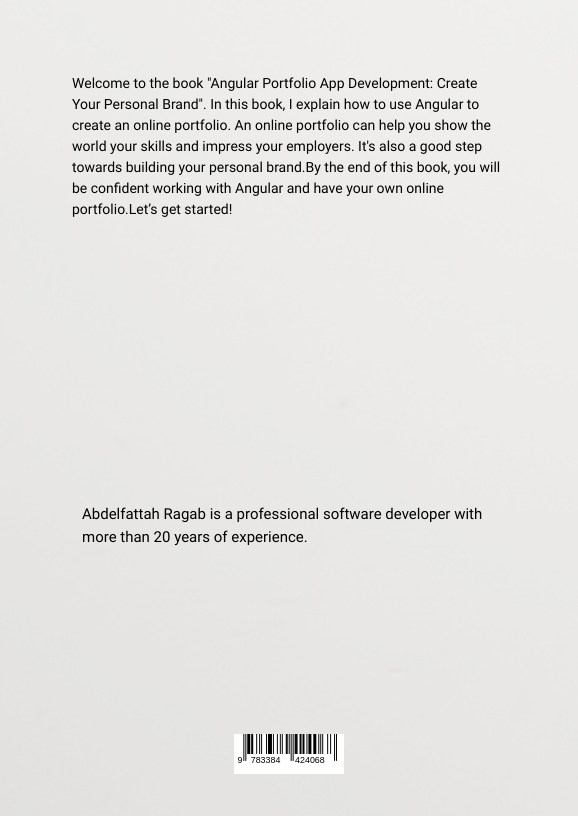 Hello, I am Abdelfattah Ragab, a professional software developer with more than 20 years of experience. I am an expert in Angular, CSS, graphic design and all web related technologies. I have published numerous books on modern CSS layouts and Angular as well as complete business solutions for e-commerce and the like. I hope you enjoy my books. With kind regards.