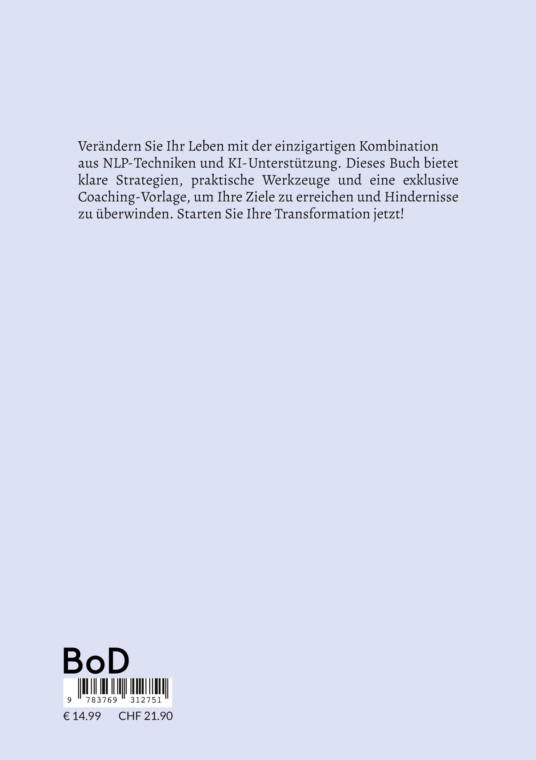 Verändern Sie Ihr Leben mit der einzigartigen Kombination aus NLP-Techniken und KI-Unterstützung. Dieses Buch bietet klare Strategien, praktische Werkzeuge und eine exklusive Coaching-Vorlage, um Ihre Ziele zu erreichen und Hindernisse zu überwinden. Starten Sie Ihre Transformation jetzt!