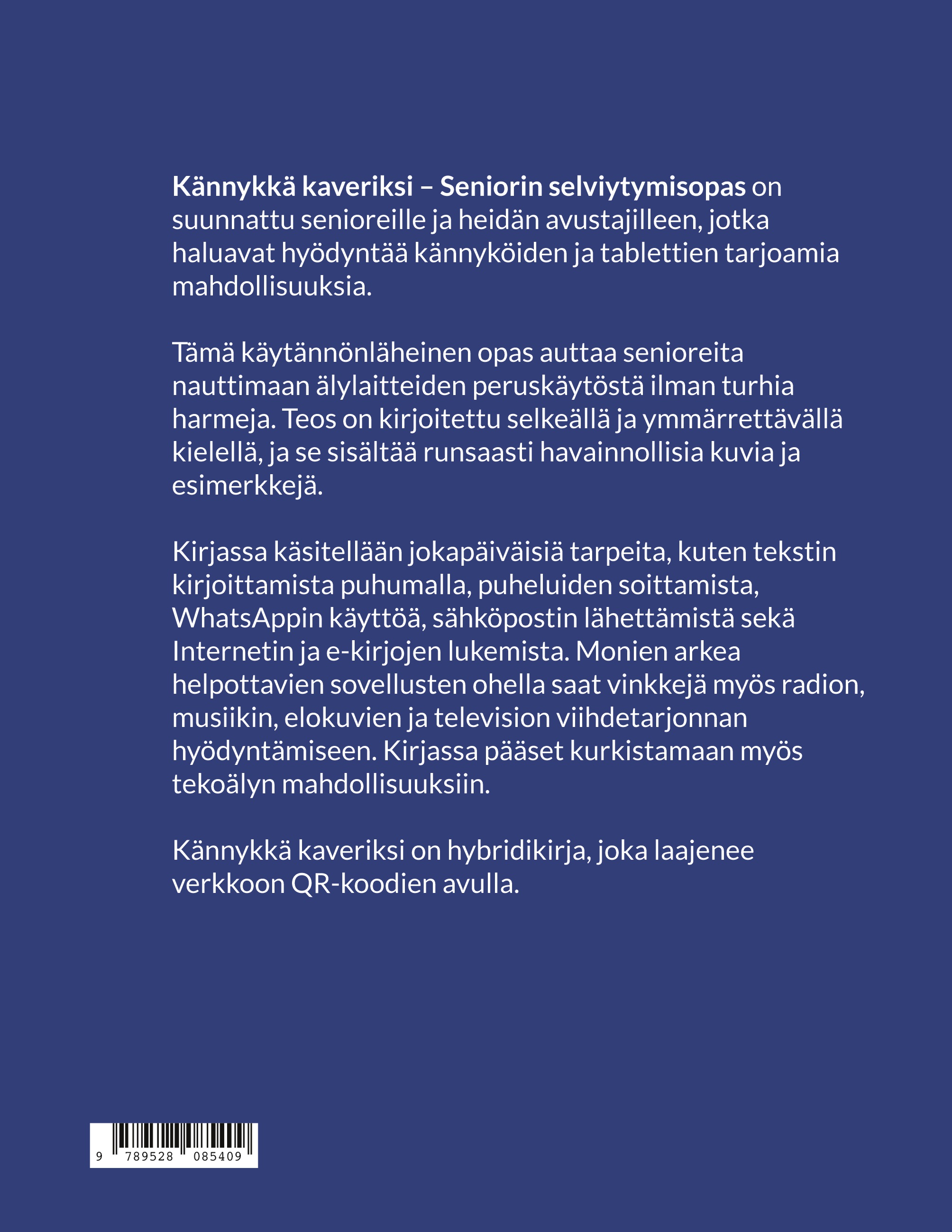 Kännykkä kaveriksi - Seniorin selviytymisopas -teoksen 2. uudistettu painos on suunnattu senioreille ja heidän avustajilleen, jotka haluavat hyödyntää kännyköiden ja tablettien tarjoamia mahdollisuuksia.