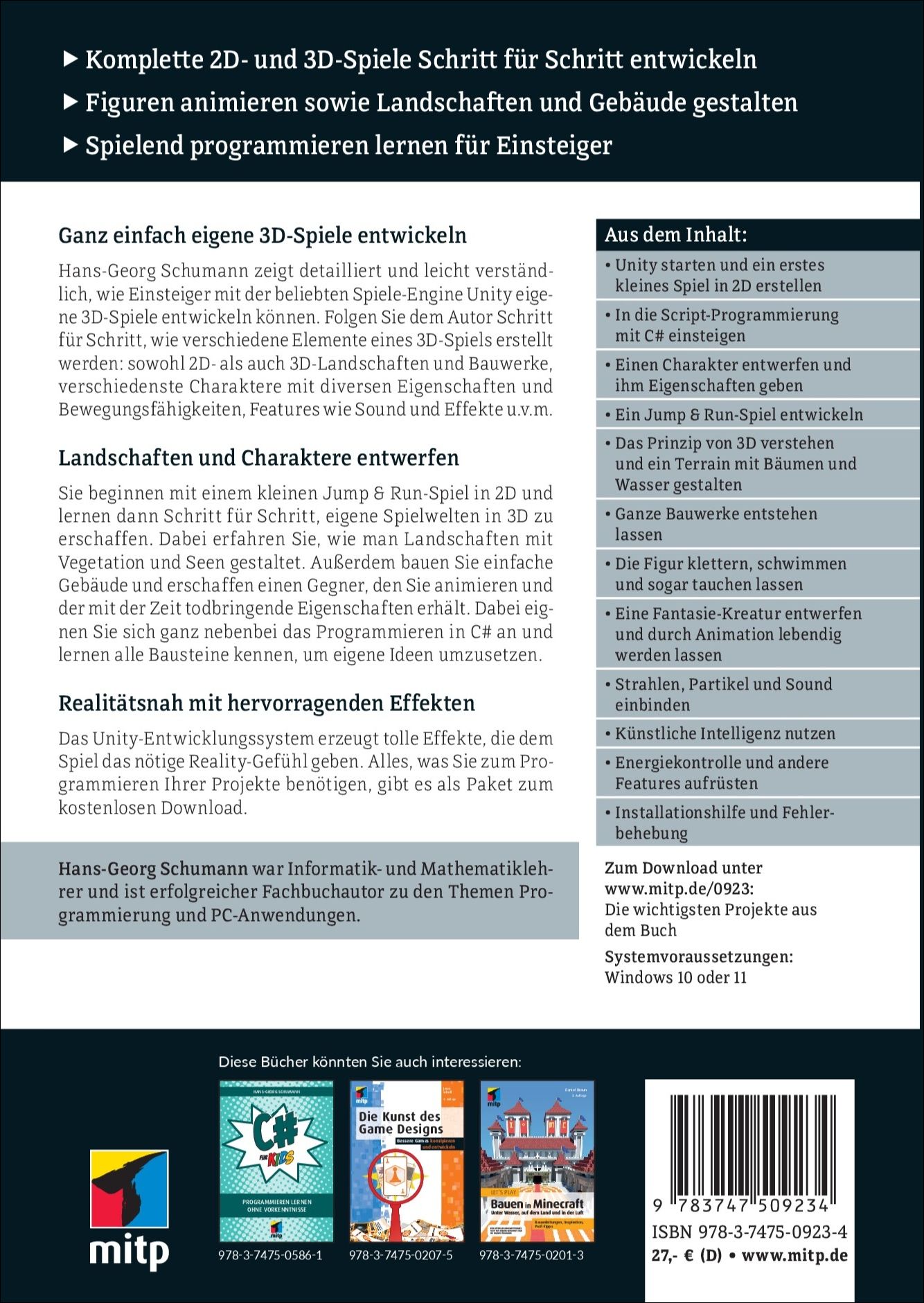 | Schlagworte | Blender • Buch • C# • Computerspiel • Game Engine • Games • Gaming • Informatik • IT • JavaScript • mitp • MonoDevelop • Programmieren • Spiele programmieren • UNITY • unity3d |