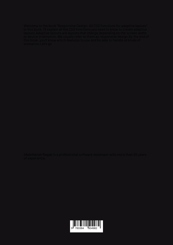 Hello, I am Abdelfattah Ragab, a professional software developer with more than 20 years of experience. I am an expert in Angular, CSS, graphic design and all web related technologies. I have published numerous books on modern CSS layouts and Angular as well as complete business solutions for e-commerce and the like. I hope you enjoy my books. With kind regards.