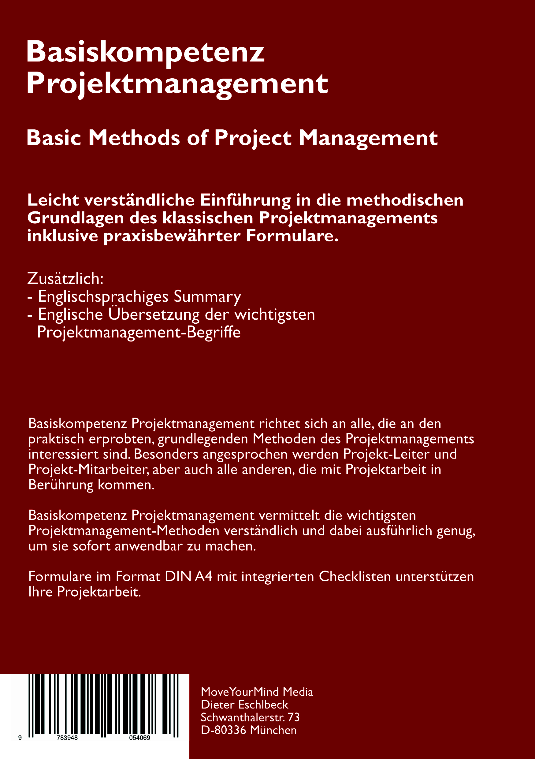 Eine leicht verständliche Einführung in praktikables Projektmanagement. Kurz und verständlich, mit vielen Tipps und Tricks eines erfahrenen Projektmanagement-Profis. Inklusive Glossar, kurze Einführung in SCRUM, Summary auf Englisch und Formularen im Format DIN A4.