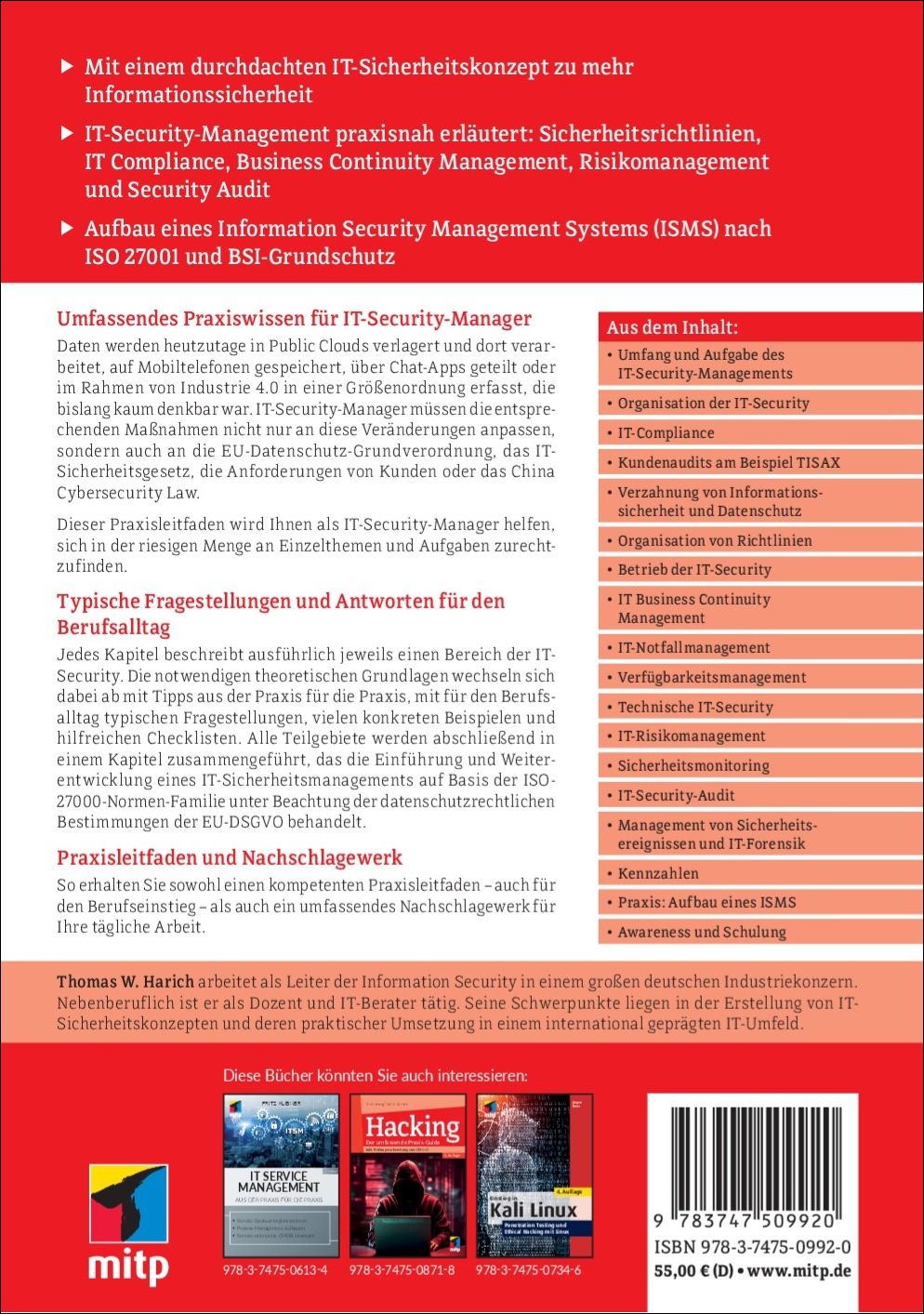 - IT-Security-Management praxisnah erläutert: Sicherheitsrichtlinien, IT Compliance, Business Continuity Management, Risikomanagement und Security Audit