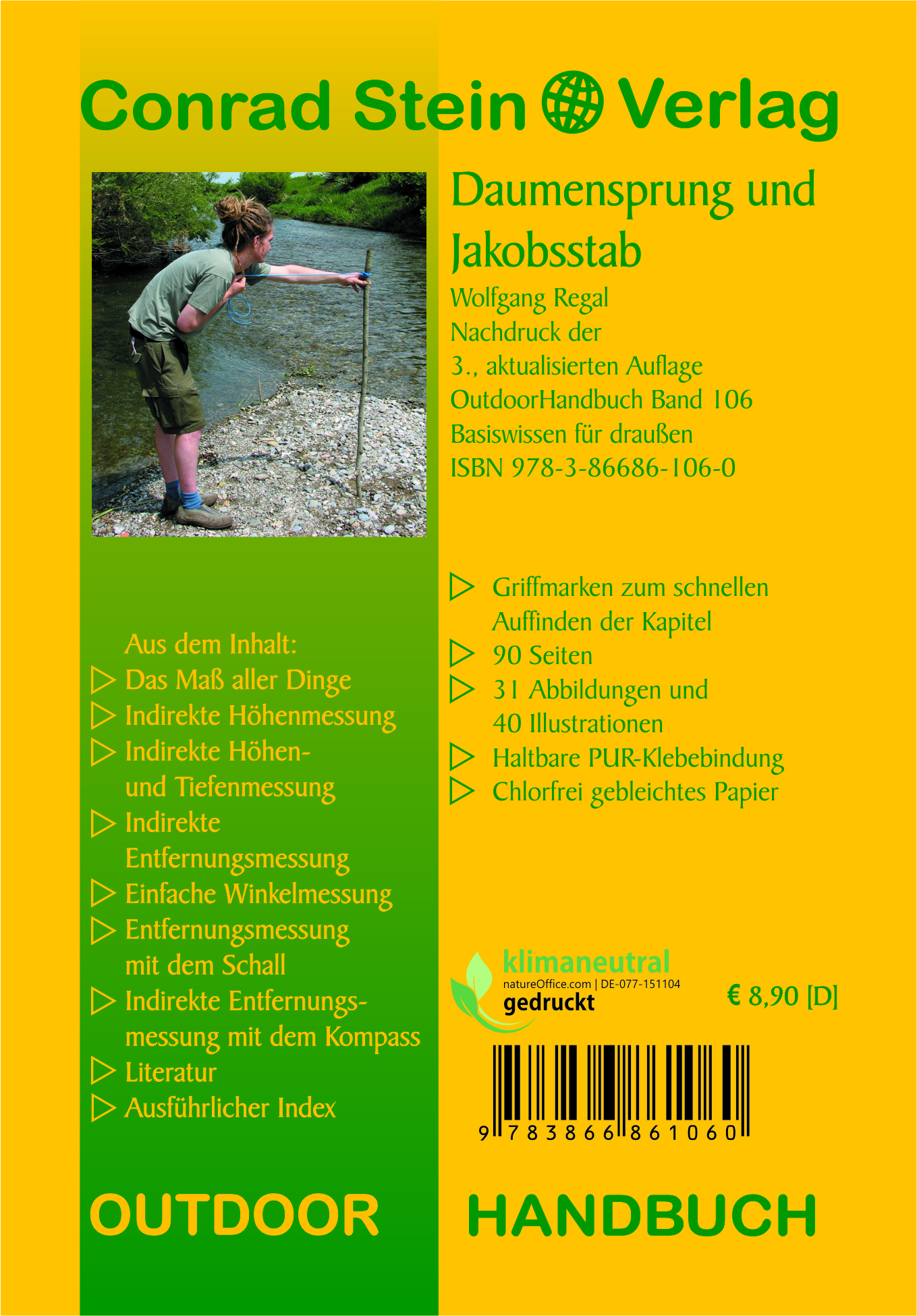 | Schlagworte | Basiswissen • Daumensprung • Daumensprung & Jakobsstab • Entfernungsmessung • Jakobsstab • Maassband • Massband • Maßband • Messen • Messen ohne Maßband • Orientierung (geograph.) • Outdoor • Ratgeber • TB/Reisen/Kartenzubehör/Sonstiges |
