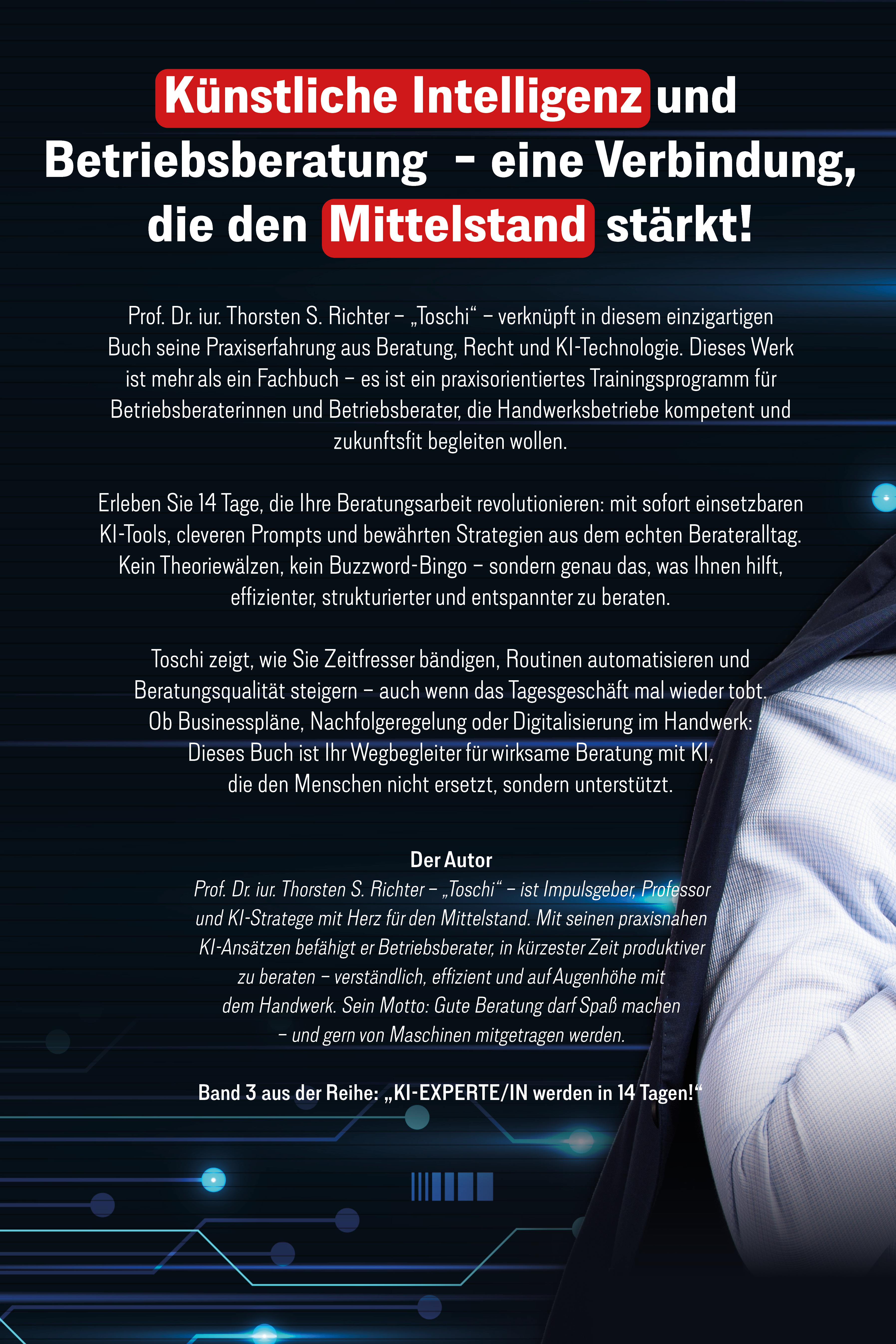 Willkommen in der Zukunft der Beratung! Dieses Buch ist kein theoretisches Lehrwerk, sondern ein praktischer Begleiter für Betriebsberaterinnen und Betriebsberater, die ihre Arbeit mit KI neu denken und gestalten wollen - auch ohne Vorkenntnisse.