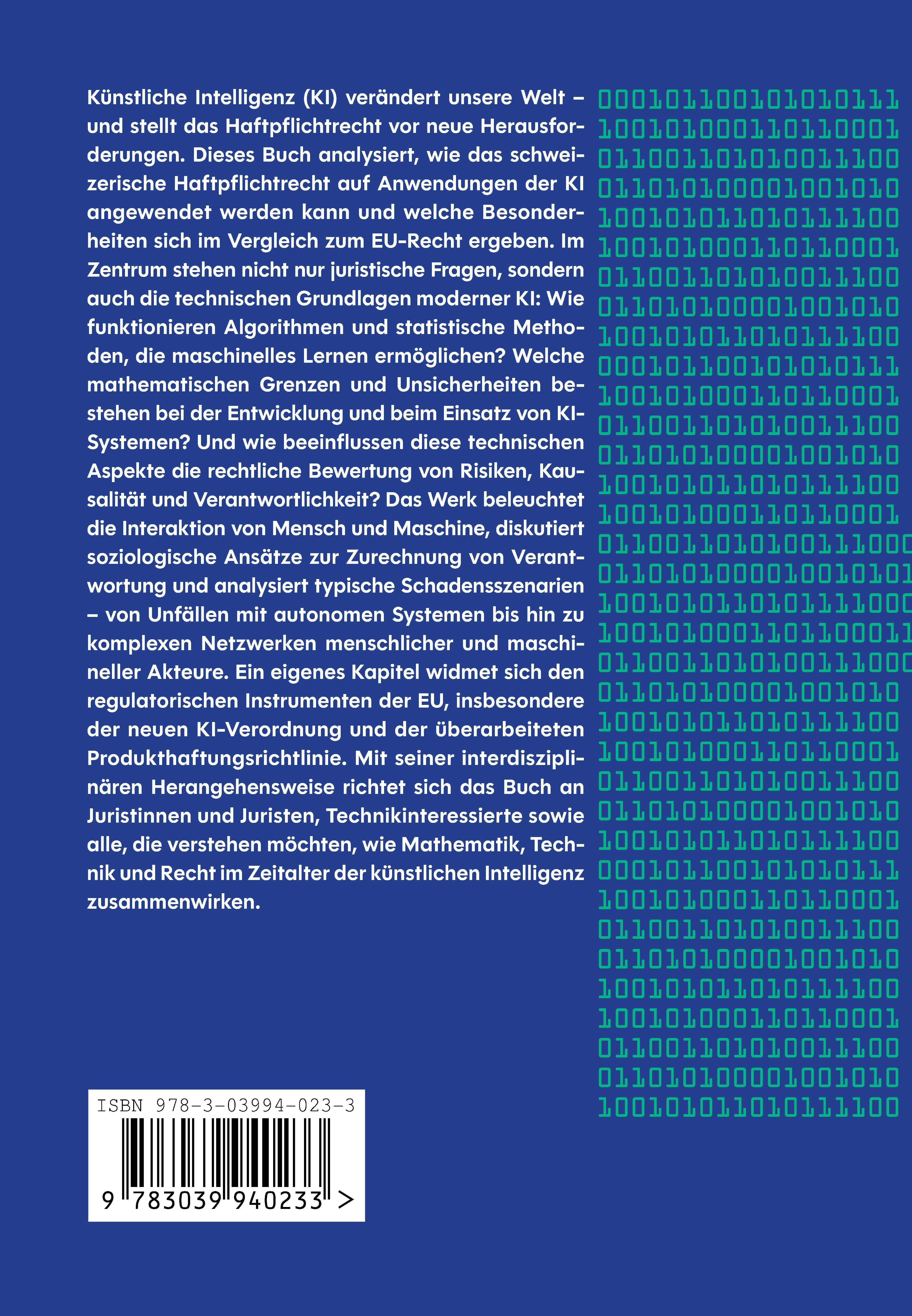 Künstliche Intelligenz (KI) verändert unsere Welt - und stellt das Haftpflichtrecht vor neue Herausforderungen. Dieses Buch analysiert, wie das schweizerische Haftpflichtrecht auf Anwendungen der KI angewendet werden kann und welche Besonderheiten sich im Vergleich zum EU-Recht ergeben.Im Zentrum stehen nicht nur juristische Fragen, sondern auch die technischen Grundlagen moderner KI: Wie funktionieren Algorithmen und statistische Methoden, die maschinelles Lernen ermöglichen? Welche mathematischen Grenzen und Unsicherheiten bestehen bei der Entwicklung und beim Einsatz von KI-Systemen? Und wie beeinflussen diese technischen Aspekte die rechtliche Bewertung von Risiken, Kausalität und Verantwortlichkeit?Das Werk beleuchtet die Interaktion von Mensch und Maschine, diskutiert soziologische Ansätze zur Zurechnung von Verantwortung und analysiert typische Schadensszenarien - von Unfällen mit autonomen Systemen bis hin zu komplexen Netzwerken menschlicher und maschineller Akteure. Ein eigenes Kapitel widmet sich den regulatorischen Instrumenten der EU, insbesondere der neuen KI-Verordnung und der überarbeiteten Produkthaftungsrichtlinie.Mit seiner interdisziplinären Herangehensweise richtet sich das Buch an Juristinnen und Juristen, Technikinteressierte sowie alle, die verstehen möchten, wie Mathematik, Technik und Recht im Zeitalter der künstlichen Intelligenz zusammenwirken.
