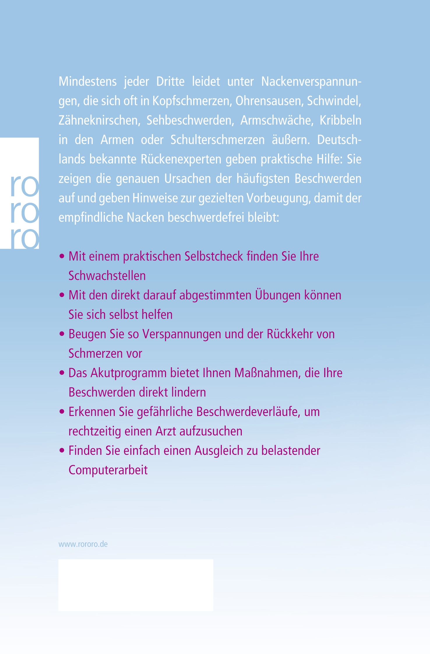 Zähneknirschen, Sehbeschwerden, Armschwäche, Kribbeln in den Armen oder Schulterschmerzen äußern. Deutschlands bekannte Rückenexperten geben praktische Hilfe: Sie zeigen die genauen Ursachen der häufigsten Beschwerden auf und geben Hinweise zur gezielten Vorbeugung, damit der