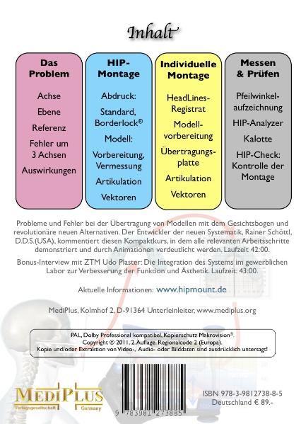 Der Autor, Rainer Schöttl, D.S.S.(USA), stellt eine völlig neue Systematik zur Übertragung der Modelle in den Artikulator vor. Als Referenz dabei dient nicht mehr eine fiktive, bzw. nur durch Manipulation darstellbare Scharnierachse, denn dies führt allzu oft zum völligen Verlust relevanter Informationen. Statt dessen werden Mitten und Ebenen direkt am Patienten abgegriffen. So entsteht eine Modellsituation im Artikulator bei der die Artikulatormitte die Schädelmitte darstellt und die Tischebene die Okklusalebene repräsentiert.
