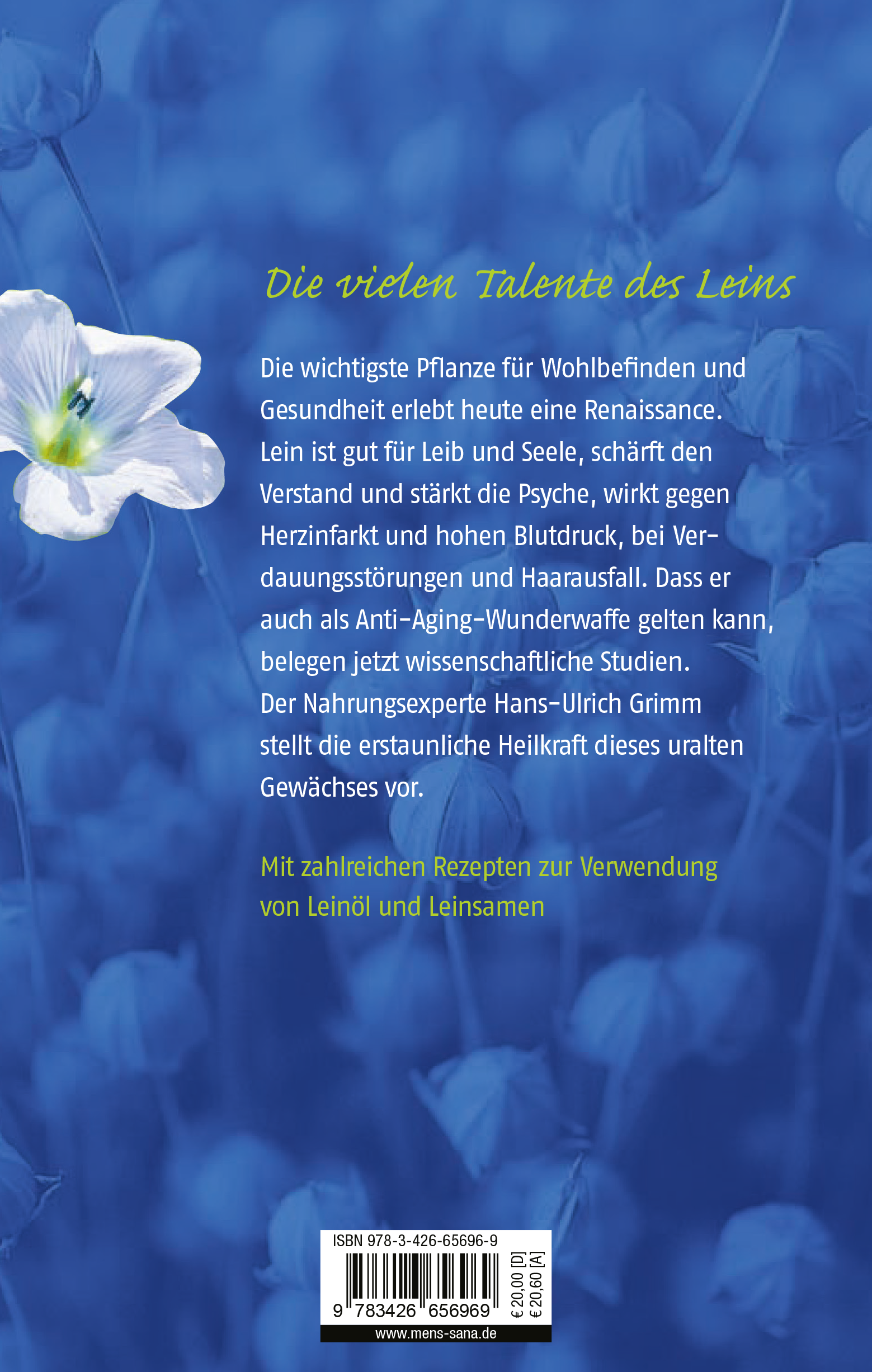 Ein Buch über die fast unglaublichen Wirkungen eines uralten Lebensmittels. Leinöl und Leinsamen können, nach neuesten wissenschaftlichen Erkenntnissen, vorbeugend wirken gegen Herzinfarkt, gegen hohen Blutdruck, gegen viele Zivilisationskrankheiten wie etwa die Zuckerkrankheit, ja sogar bei manchen Krebsarten. Die Früchte des Leins sind gut für das Gehirn. Sie schärfen den Verstand und stärken die Seele.