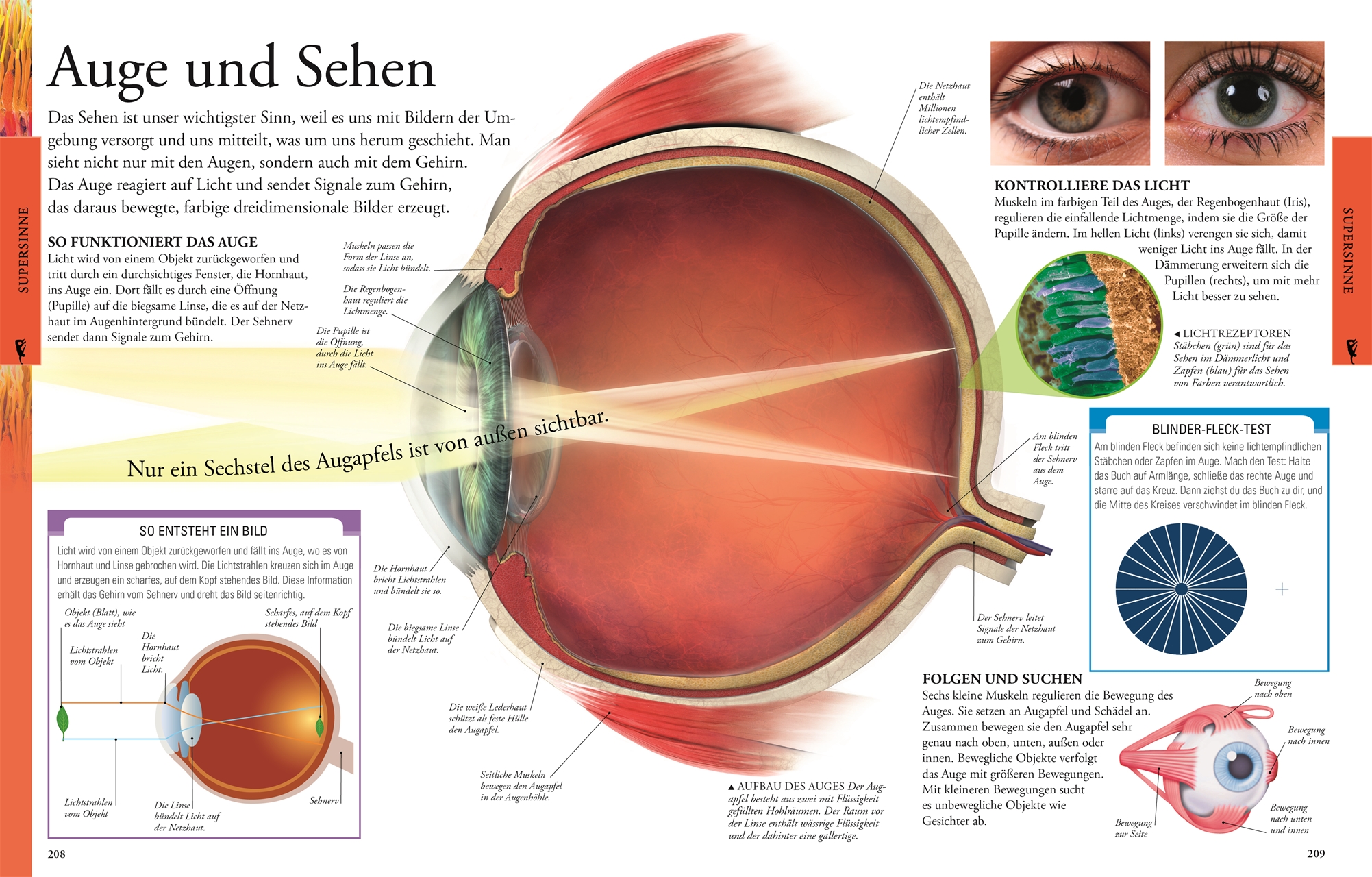 Durch die unterschiedliche farbliche Kennzeichnung der Kapitel ist ein schnelles Nachschlagen möglich. Spektakuläre und zum Teil großformatige Fotos zeigen viele anatomische Details und machen das Buch visuell ansprechend. Alle Informationen sind altersgerecht aufbereitet und selbst schwierige Sachverhalte werden auf leicht verständliche Weise erklärt. Zahlreiche Infokästen vertiefen das Wissen noch zusätzlich. Faszinierende Zahlen und Fakten lockern die Texte zwischendurch auf. Eine perfekte Ergänzung zum Biologieunterricht und ideal für Referate!
