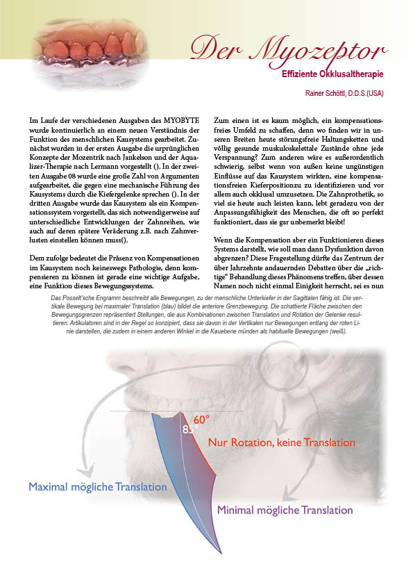MYOBYTE 5/2013 mit Artikeln zur Kauebene, zur Myofunktionellen Therapie, zur Korrektur von Übertragungsfehlern bei der Modelleinstellung, zur Aufbisstheraphie samt einer detaillierten Anleitung zur Herstellung des Myozeptors, Differenzialdiagnose bei schwierigen Dysfunktionsfällen über die Therapie mit Behelfen bis zur prothetischen Umsetzung, zur korrekten Haltung bei Arbeit, der Entspannung und der Bissnahme und zur Reflextherapie über die Füsse mit Einlagesohlen.