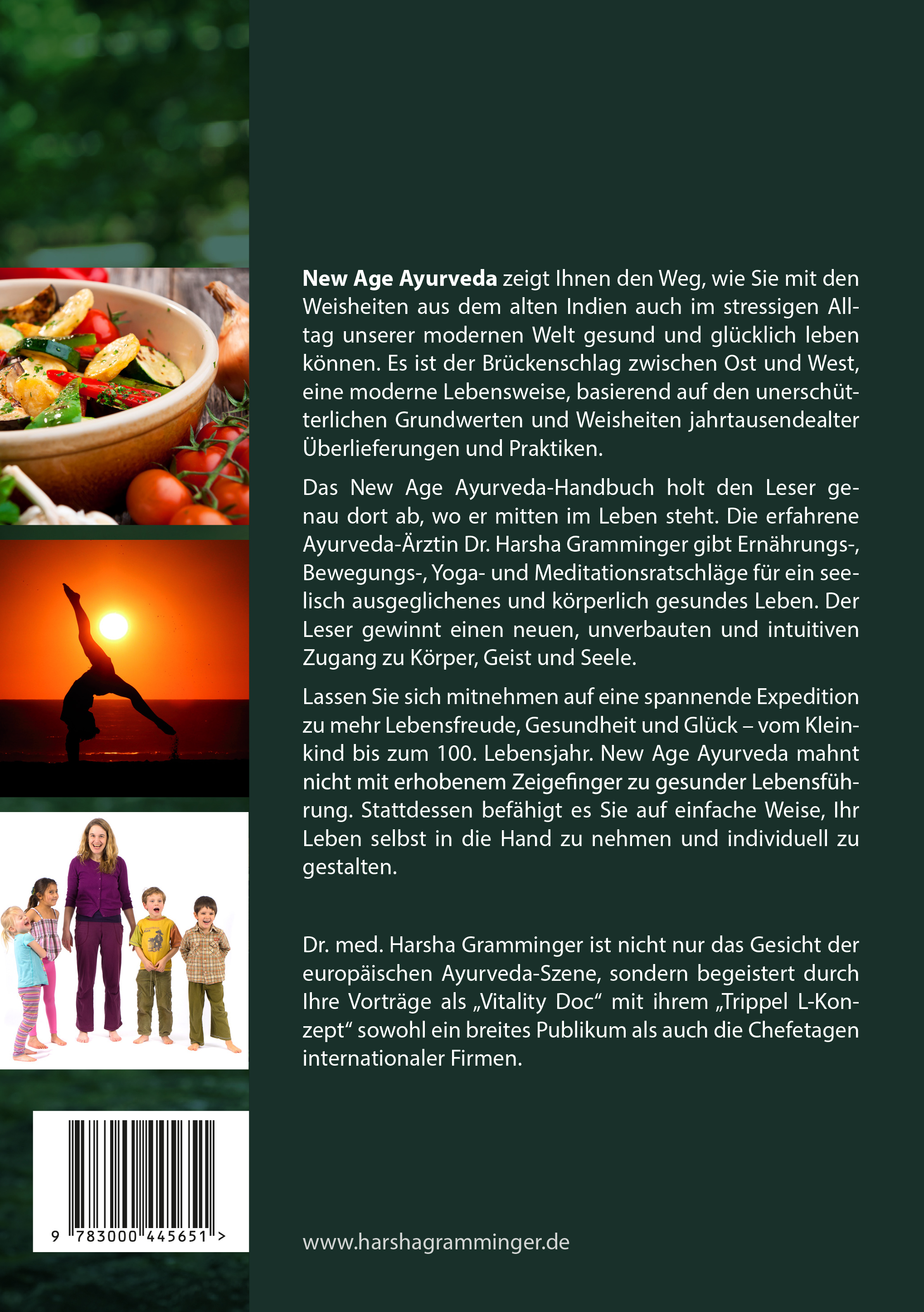 Dr. med. Harsha Gramminger gehört zu den Pionieren des Ayurveda in Europa. Nach ihrem Studium der Humanmedizin in Hamburg absolvierte sie eine Ausbildung zur Ayurveda-Ärztin am Ayurvedic Roy State College in Kalkutta und beim weltweit bekannten Ayurvedaexperten Dr. Vasant Lad in den USA. Um die altindische Gesundheitslehre auch hierzulande anbieten zu können, gründete Harsha Gramminger eine Ayurveda-Klinik in Deutschland, bildet Ärzte und Therapeuten aus und entwickelte eine eigene Reihe von Ayurveda-Produkten nach europäischen Qualitätsmaßstäben. In der EUAA (European Ayurveda Association) engagiert Harsha Gramminger sich bei der EU und international für die Belange des Ayurveda. Mit dem „VITAL LEADERSHIP“ und dem „Triple-L-Konzept“ begeistert Harsha Gramminger die Führungsetagen zahlreicher Unternehmen und bringt neuen Schwung ins Management. Mehr Informationen unter: www.harshagramminger.de