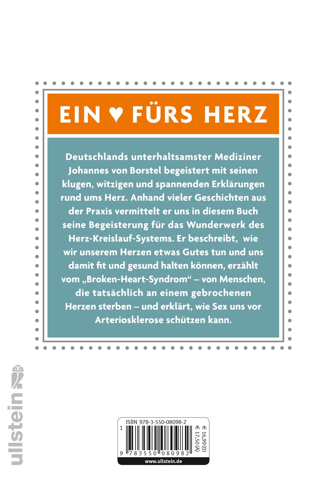 Anhand vieler Geschichten aus der Praxis vermittelt er uns in diesem Buch seine Begeisterung für das Wunderwerk des Herz-Kreislauf-Systems. Er beschreibt, wie wir unserem Herzen etwas Gutes tun und uns damit fit und gesund halten können, erzählt vom „Broken-Heart-Syndrom“ – von Menschen, die tatsächlich an einem gebrochenen Herzen sterben – und erklärt, wie Sex uns vor Arteriosklerose schützen kann.