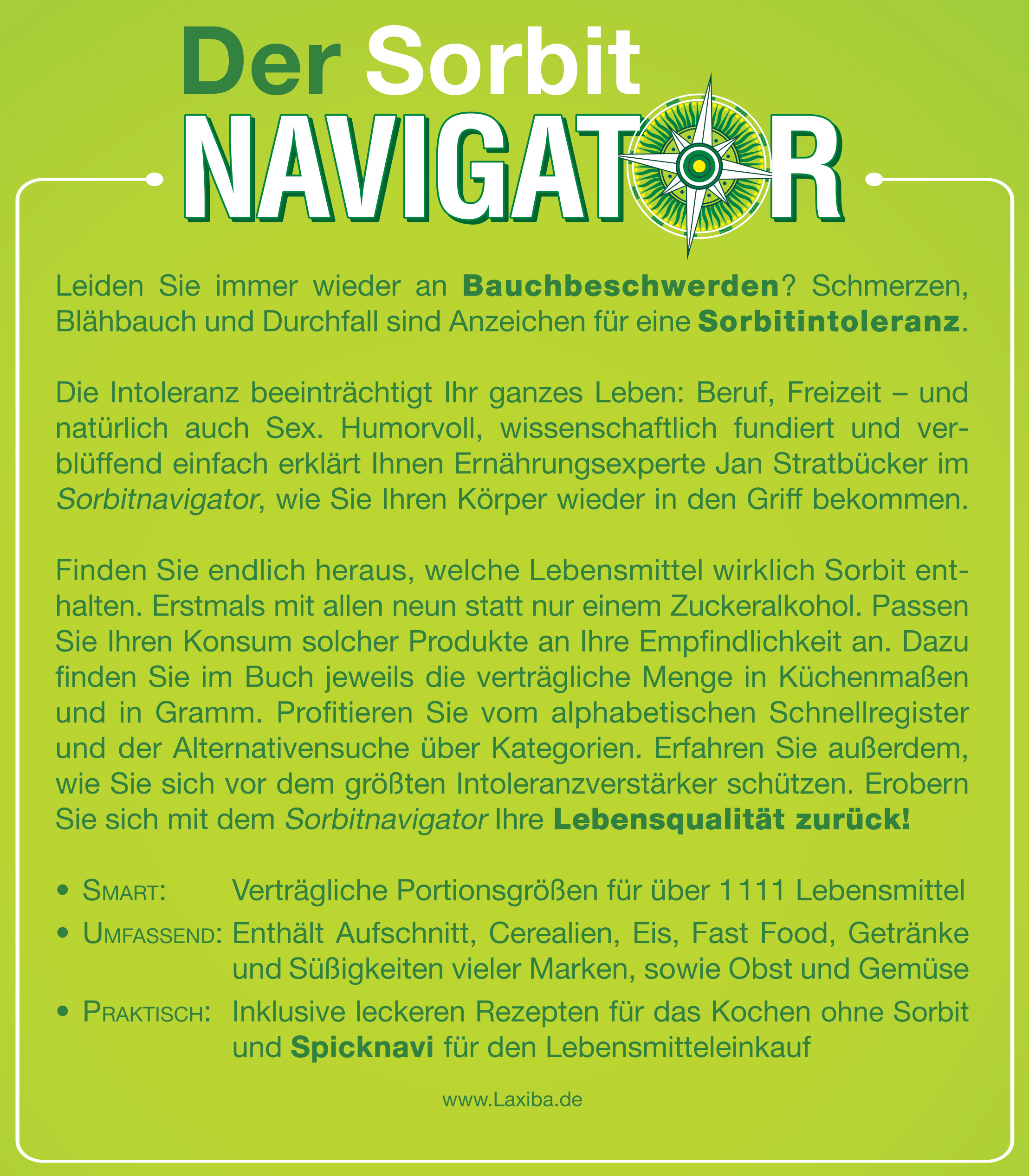Die Intoleranz beeinträchtigt Ihr ganzes Leben: Beruf, Freizeit – und natürlich auch Sex. Humorvoll, wissenschaftlich fundiert und verblüffend einfach erklärt Ihnen Ernährungsexperte Jan Stratbücker im Sorbitnavigator, wie Sie Ihren Körper wieder in den Griff bekommen.