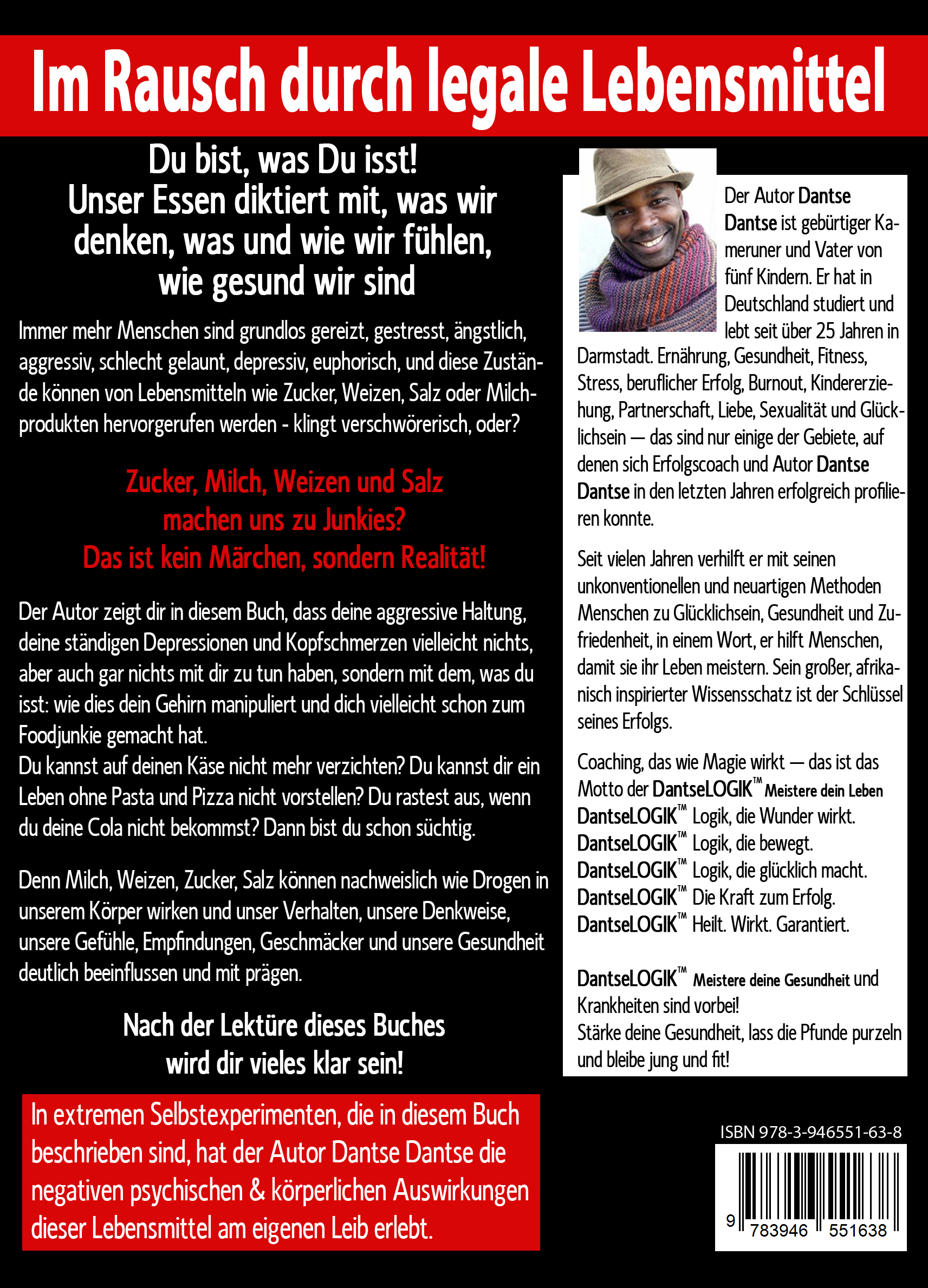 In extremen Selbstexperimenten, die in diesem Buch beschrieben sind, hat der Autor Dantse Dantse die negativen psychischen Auswirkungen von Zucker, Milch, Weizen und Salz am eigenen Leib erlebt. Diese 4 Lebensmittel manipulieren unser Gehirn, unseren Körper, unsere Gefühle, unser Denken und unsere Gedanken, erzwingen unseren Willen.