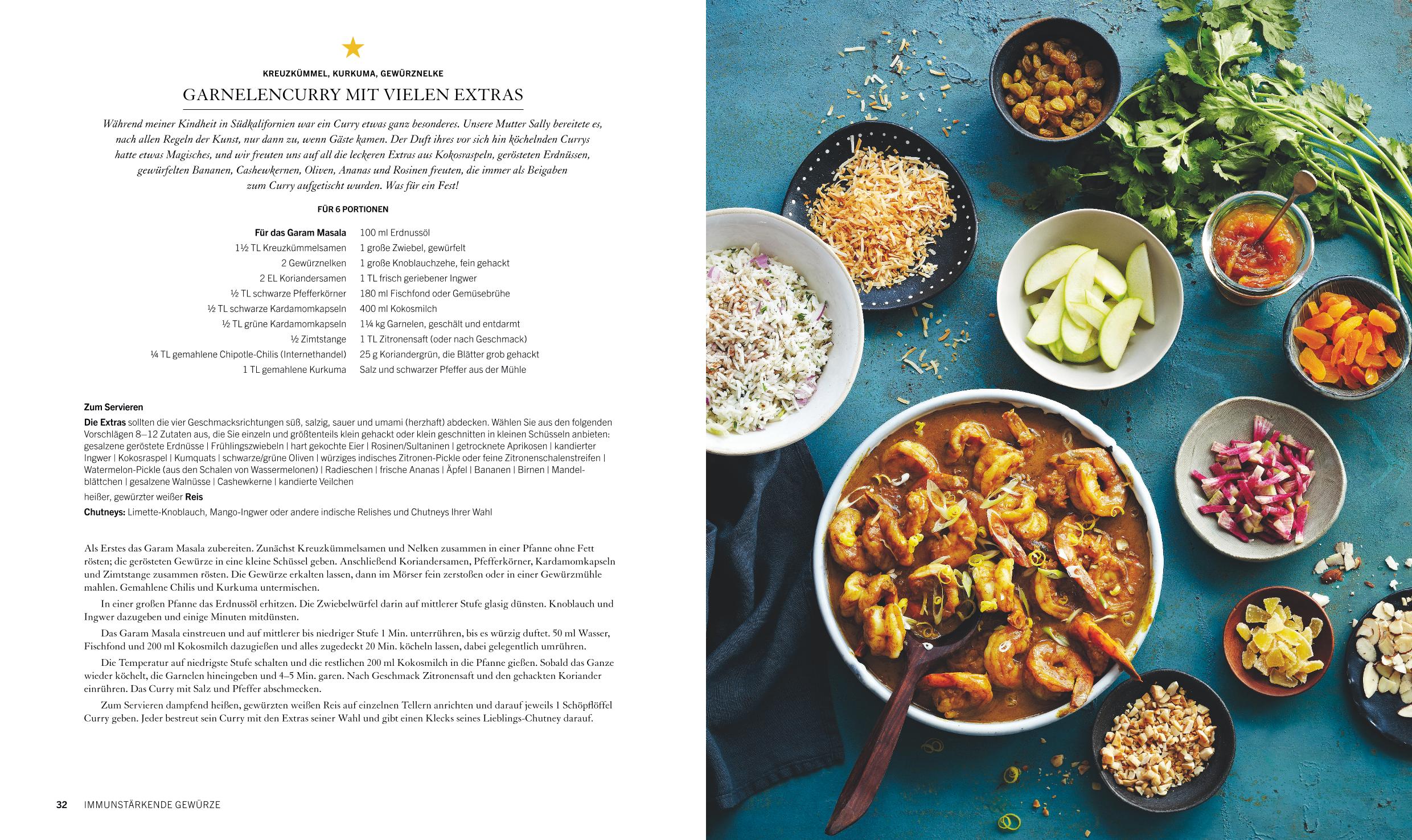 Die heilende Wirkung von Gewürzen ist ein wachsender Trend. Gewürze nehmen zunehmend den Platz der Superfoods ein und stehen sinnbildlich für eine gesunde Ernährung. Gewürze stecken voller verborgener Kräfte, die ganz unterschiedlich wirken können. Ob immunisierend, reinigend, kräftigend, anregend, erholsam oder beruhigend - wer weiß, welches Gewürz welche Wirkung hat, kann dessen ganze Kraft entfalten und für sich nutzen. Aufgegliedert in Kategorien zu ihren verschiedenen heilenden Wirkungen, gibt Natasha MacAllers Buch einen leicht zugänglichen Überblick zu Gewürzen, die wir alle kennen und lieben wie auch zu solchen, die es noch kennenzulernen gilt. Zu jedem Gewürz gibt es einen einführenden Text zu Herkunft, Entdeckung, Verwendung und Wirkung sowie begleitende Zitate von Medizinern und Ernährungswissenschaftlern sowie interessante, wunderschön ins Bild gesetzte Rezepte aus den verschiedensten Weltküchen. Die Fotos im gesamten Buch sind modern, farbenfroh, kunstvoll ausgeleuchtet und zeigen die Gewürze in einem neuen Licht. Die über 80 Rezepte enthalten Beiträge von über 20 internationalen Spitzenköchen wie Peter Gordon, Yotam Ottolenghi, Raghavan Iyer, Michael Kempf, Anne-Sophie Pic und April Bloomfield.