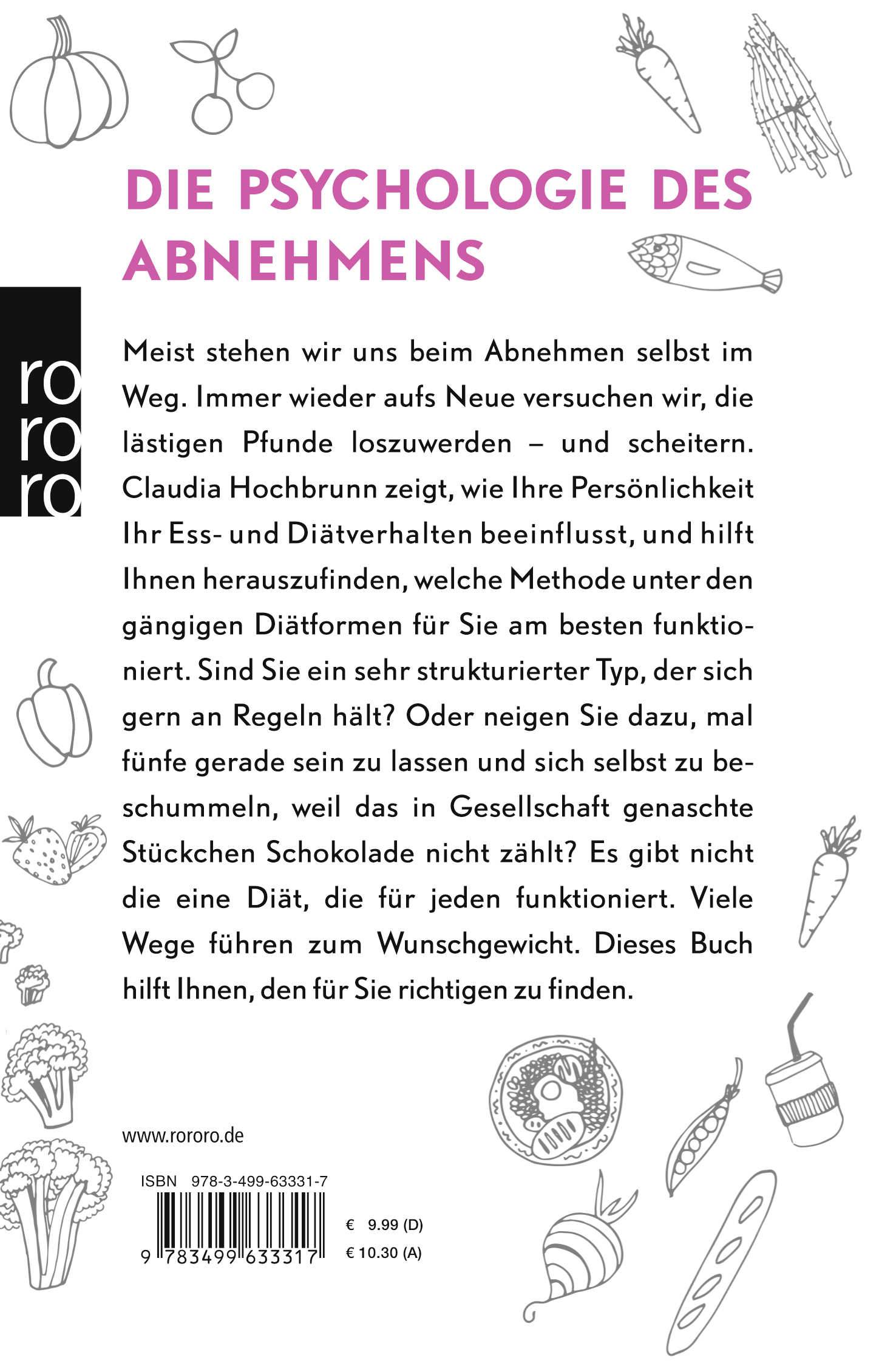 Jeden Januar wieder reihen sich auf der Bestsellerliste die Diätratgeber aneinander. Warum? Weil wir Menschen immer wieder an Diäten scheitern und dann nach der neuen Methode suchen, mit der es diesmal aber ganz bestimmt klappen wird. Das tatsächliche Problem mit dem Abnehmen besteht jedoch darin, dass es nicht die eine Methode gibt, die für jeden funktioniert, sondern viele Wege zum Ziel führen und jeder für sich selbst den richtigen Weg finden muss. Unsere Lebensführung hat uns unser Übergewicht beschert, und es sind unsere kleinen, persönlichen Eigenheiten, die es uns so schwer machen, die für uns richtige Abnehmform zu finden. Hier setzt Claudia Hochbrunn an: Ihr Buch ist nicht noch ein Ratgeber, der den leichten Weg zum Wunschgewicht verspricht, sondern es erläutert die Psychologie des Abnehmens und hilft dem Leser so, seinen individuellen Weg zum Ziel zu finden.
