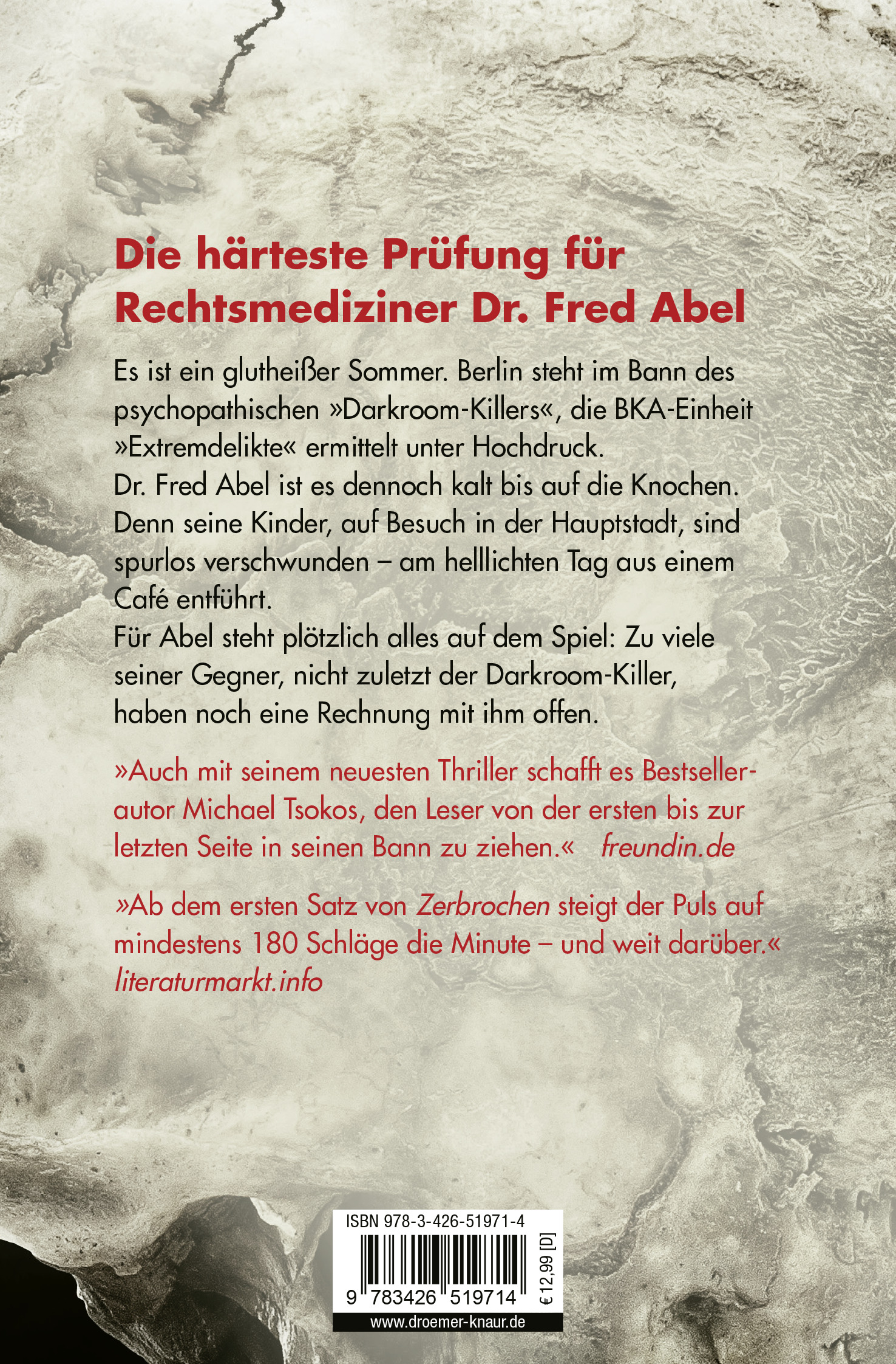 "Auch mit seinem neuesten Thriller schafft es Bestseller-Autor Michael Tsokos [...] den Leser von der ersten bis zur letzten Seite in seinen Bann zu ziehen." www.freundin.de 20170507