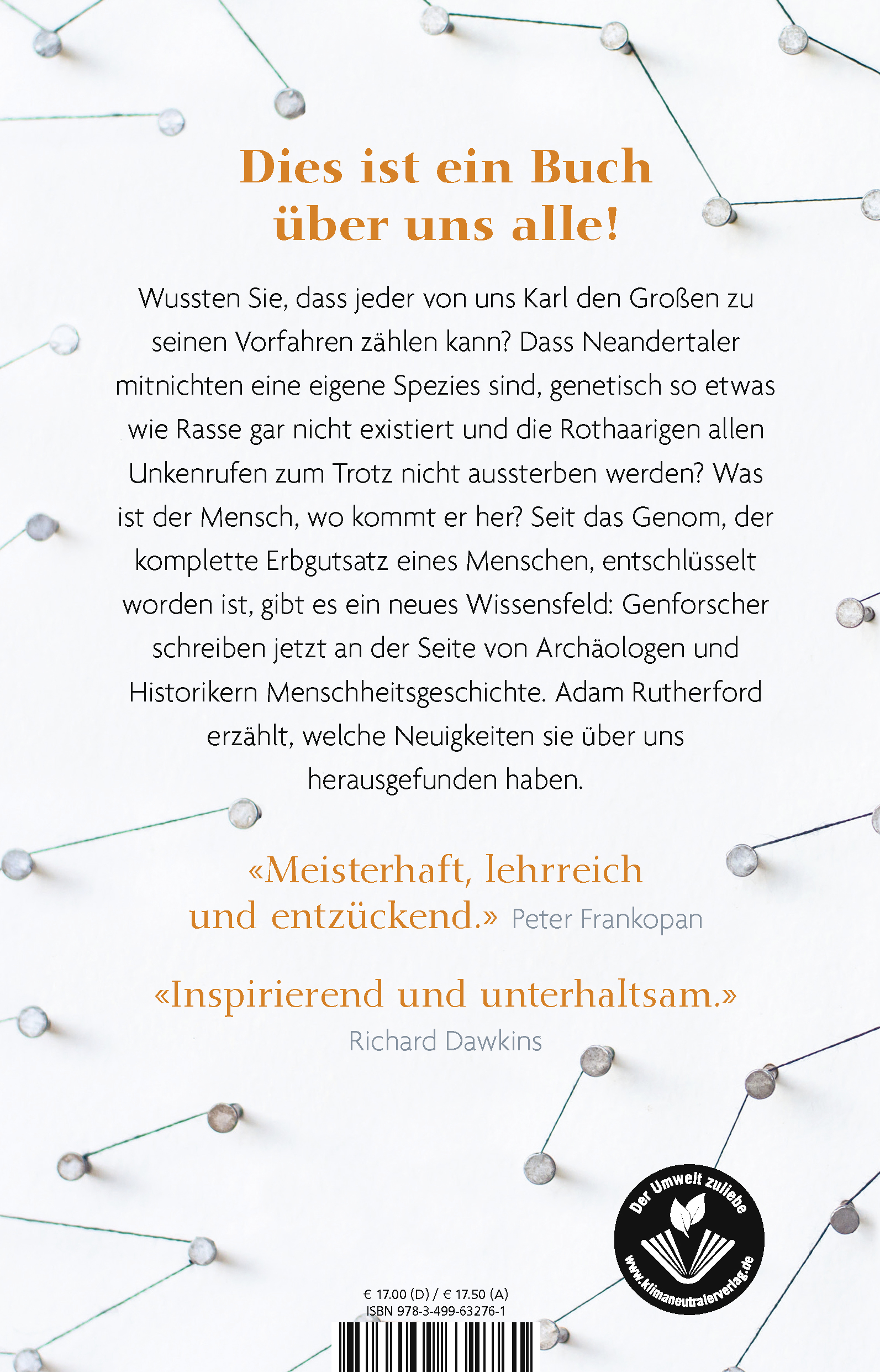 Eine brilliante, maßgebliche, überraschende, fesselnde Einführung in die Humangenetik. Wenn Sie wenig über die Geschichte des Menschen wissen, werden Sie verzaubert sein. Wenn Sie viel über die Geschichte des Menschen wissen, werden Sie verzaubert sein. So gut ist das.