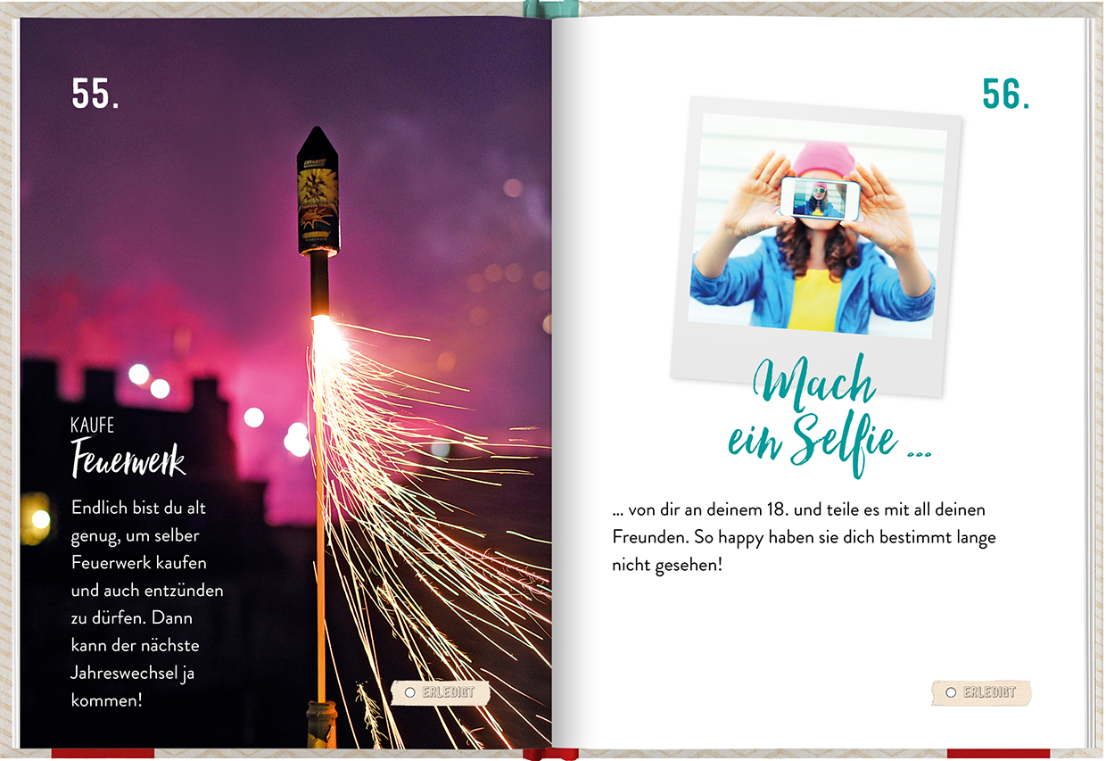 | Schlagworte | 100 Dinge • 100 dinge buch • 100 Ideen • 18. • 18. Geburtstag • 18. geburtstag bruder • 18. geburtstag enkel • 18. geburtstag enkelin • 18. geburtstag geldgeschenk • 18 Geburtstag Geschenk • 18. geburtstag geschenk lustig • 18 geburtstag junge • 18 geburtstag mädchen • 18. geburtstag patenkind • 18. geburtstag schwester • 18. geburtstag sohn • 18. geburtstag tochter • 18 Jahre • Abenteuer • Aktivitäten • Ankreuzbuch • Anregungen • Aufmerksamkeit • Buch • Bucket List • challenge buch • coole geschenke 18 geburtstag • coole geschenke für jungs ab 18 • coole geschenkideen 18. geburtstag • Dankeschön • endlich 18 • Erlebnis • Geburtstag • Geburtstagsgeschenk • Geburtstagskarte • Geschenk • Geschenkbuch • geschenke zur volljährigkeit • Geschenk Freund • Geschenk Freundin • Geschenkidee • geschenkideen 18. geburtstag • Geschenk Patenkind • Geschenk Sohn • Geschenk Tochter • Geschenk zum 18. • Geschenk zur Volljährigkeit • Humor • Ideenbuch • ideen zum 18 geburtstag • Lebensfreude • Mitbringsel • Spaß • Unterhaltung • Volljährig • Volljährigkeit • volljährigkeit für einsteiger |