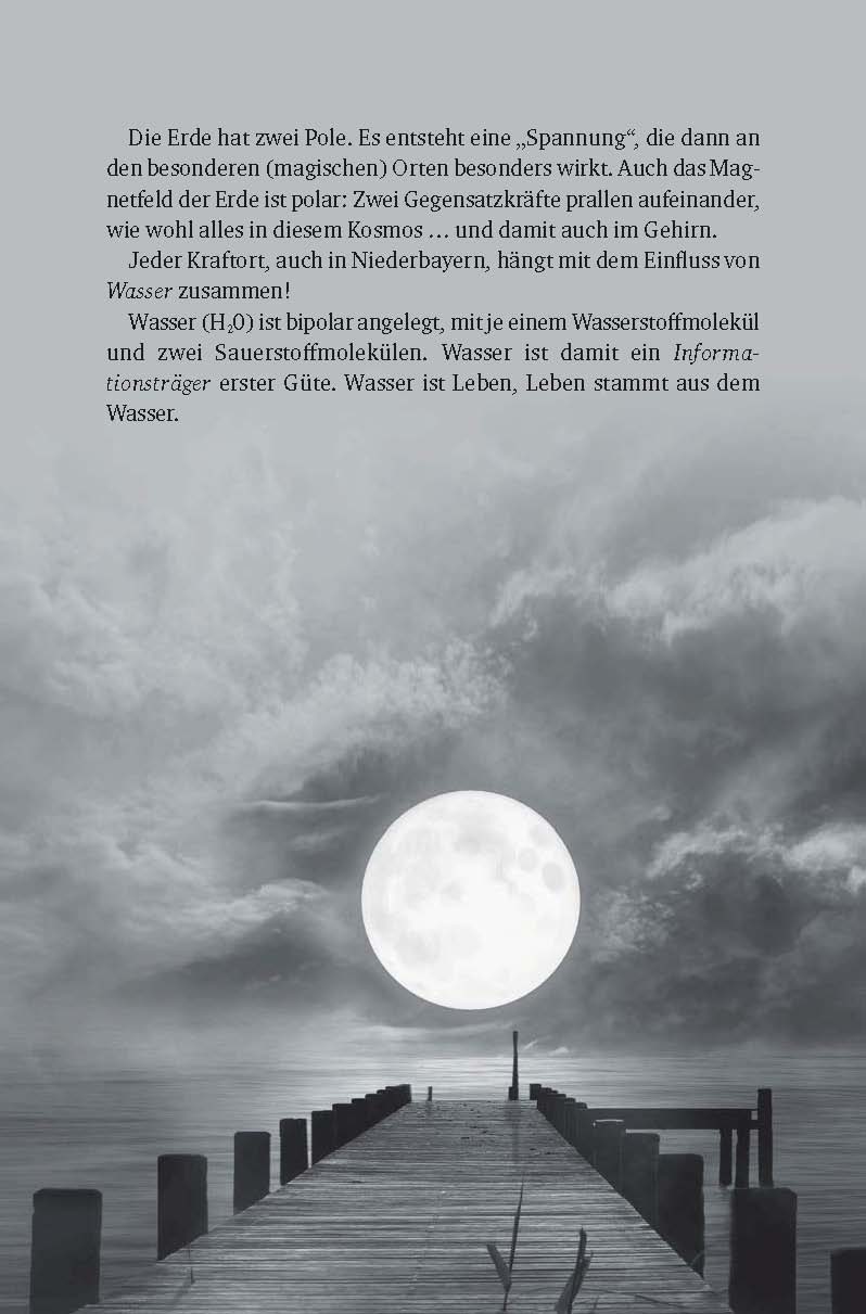 Wer Niederbayern liebt, durch Fluren zieht und schollenschwere Äcker bewundert, wer den erdzeitalten Granit des Waldes erfühlt, merkt schnell: Alles hat hier mehr Masse, ist schwerer. Und damit realer, wahrer. Das beeinflusst auch die Weltsicht, man steht mit beiden Beinen auf dem Boden.Auf der bayerischen Landkarte hat Niederbayern nur im Osten feste natürliche Grenzen. Unten der Inn, oben auf der Karte, also nordöstlich verlaufend, der Hauptkamm des Bayerischen Waldes. Südwestlich wandert der Finger von Simbach/Braunau über Landshut bis Kelheim, Riedenburg, dann zur Altmühl. Und dazwischen wahre Kraftort-Perlen: Straubing, Bogen, Landau, Vilshofen, Passau, Regen, Landshut und das herrliche Rottal. Vor allem stille, geheime Plätze."Was ist das denn, ein magischer Ort ...?", so lautet die erste Frage bei Fritz Fenzls zahlreichen Führungen. "Ein bestimmter Ort, an dem etwas mit Ihnen passiert, zumeist Heilung, prophetische Gabe, im weitesten Sinne auch Glück!", antwortet er dann.Und nicht vergessen: Man muss hingehen. Da sein. Der Ort nimmt einen mit.