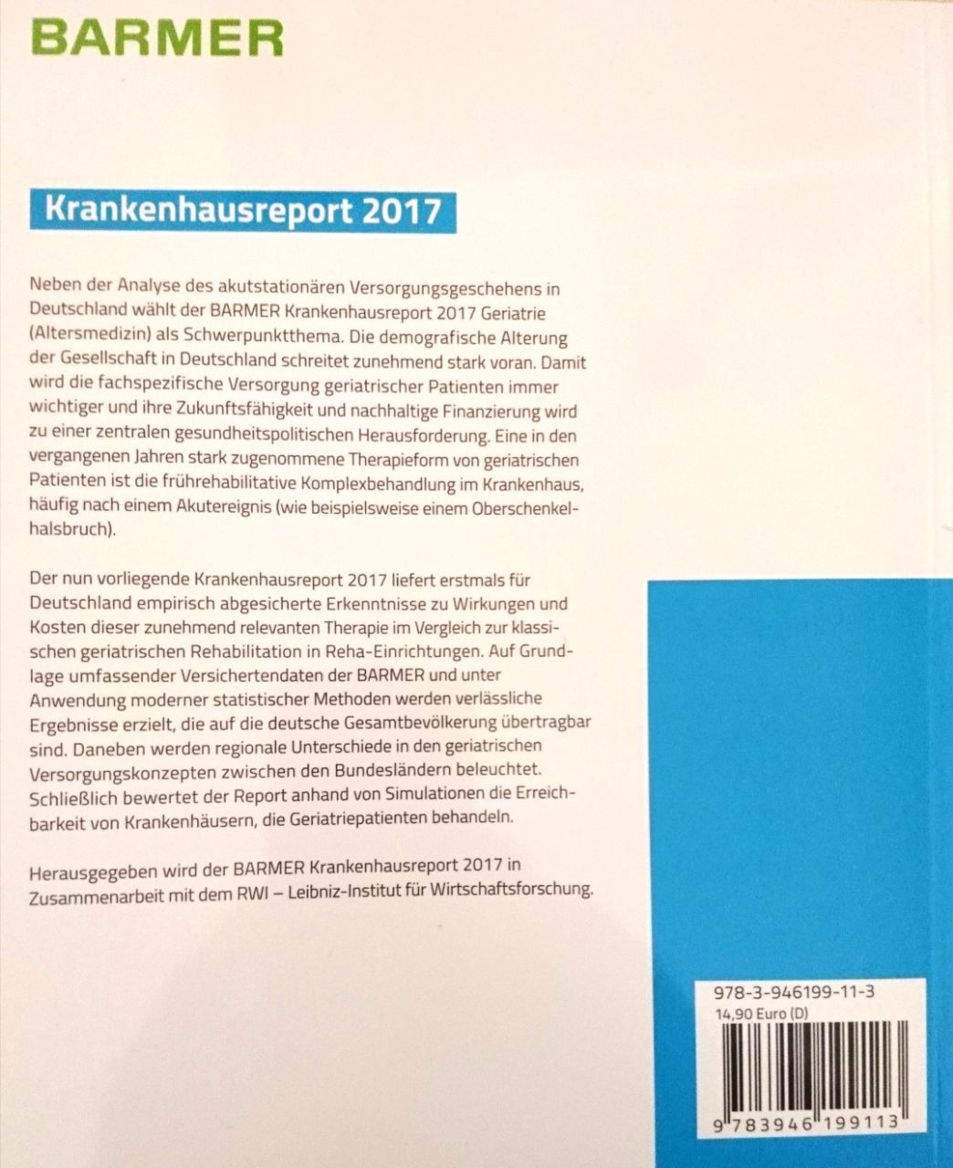 | Schlagworte | Altersmedizin • Barmer • Geriatrie • Gesundheitsanalyse • Krankenhausreport • Schriftenreihe |