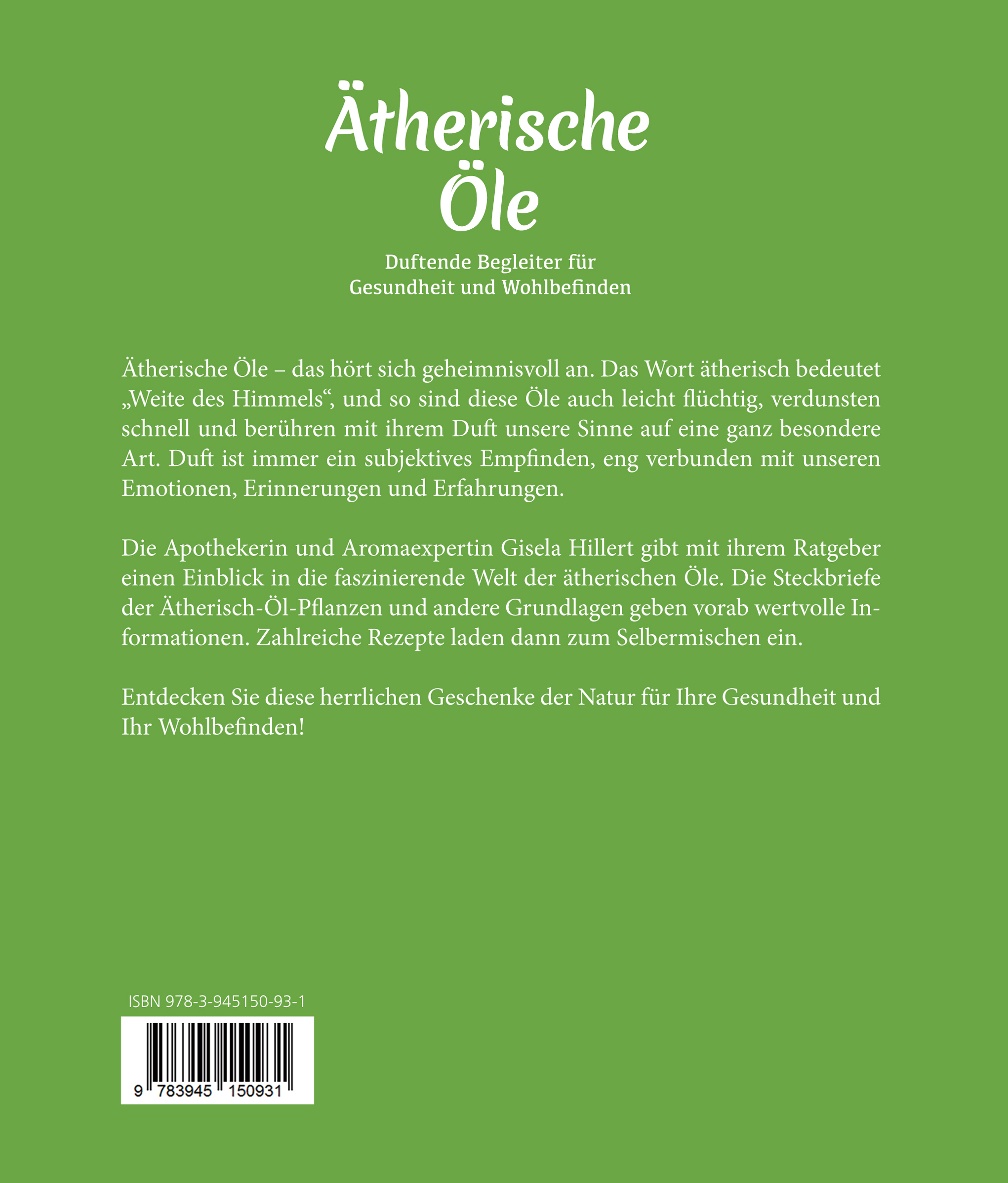 Ätherische Öle - das hört sich geheimnisvoll an. Das Wort ätherisch bedeutet "Weite des Himmels", und so sind diese Öle auch leicht flüchtig, verdunsten schnell und berühren mit ihrem Duft unsere Sinne auf eine ganz besondere Art. Duft ist immer ein subjektives Empfinden, eng verbunden mit unseren Emotionen, Erinnerungen und Erfahrungen. Die Apothekerin und Aromaexpertin Gisela Hillert gibt mit ihrem Ratgeber einen Einblick in die faszinierende Welt der ätherischen Öle. Die Steckbriefe der Ätherisch-Öl-Pflanzen und andere Grundlagen geben vorab wertvolle Informationen.Zahlreiche Rezepte laden dann zum Selbermischen ein.Entdecken Sie diese herrlichen Geschenke der Natur für Ihre Gesundheit und Ihr Wohlbefinden!