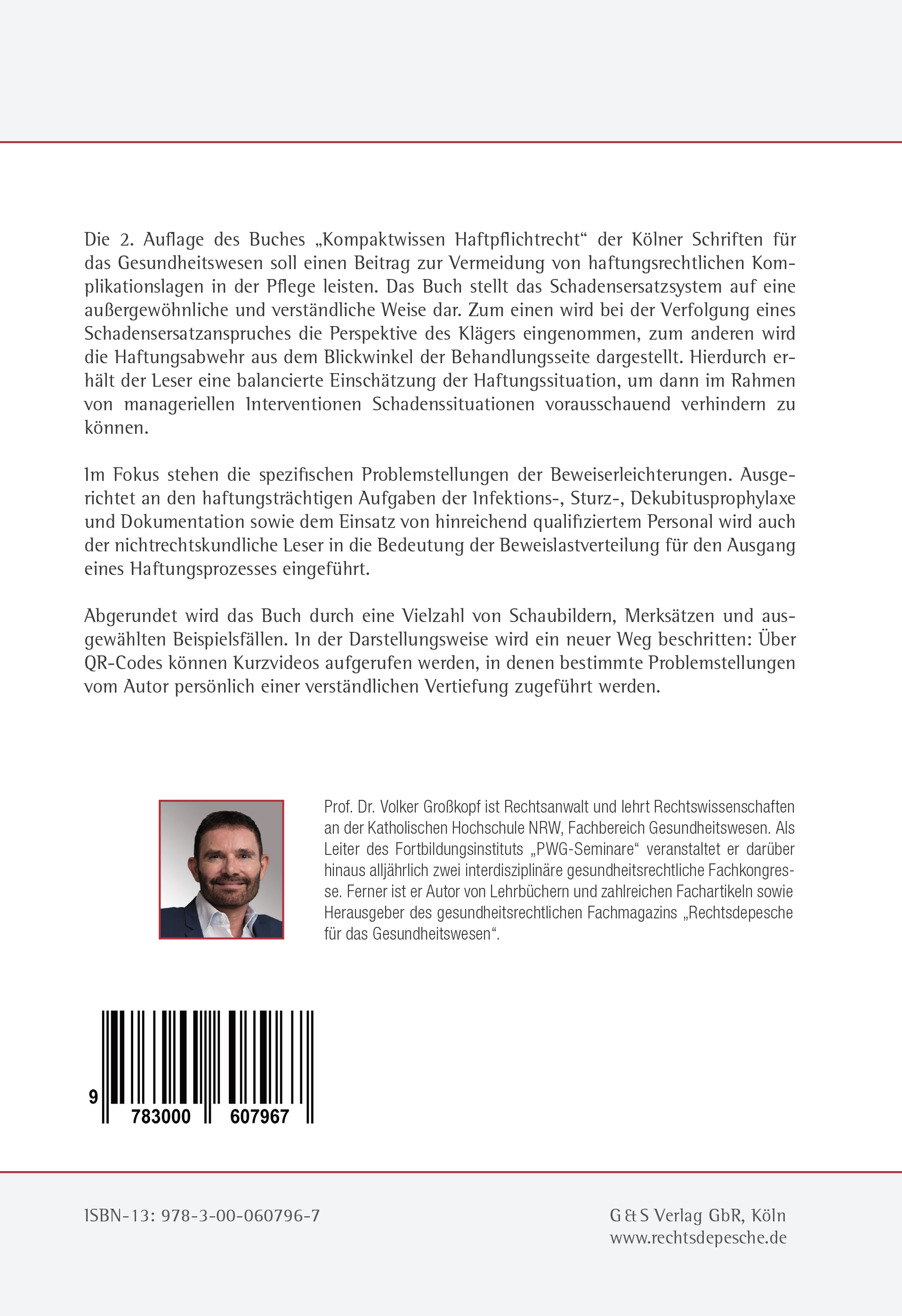 Prof. Dr. Volker Großkopf ist Rechtsanwalt und lehrt Rechtswissenschaften an der Katholischen Hochschule NRW, Fachbereich Gesundheitswesen. Als Leiter des Fortbildungsinstituts „PWG-Seminare“ veranstaltet er darüber hinaus alljährlich zwei interdisziplinäre gesundheitsrechtliche Fachkongresse. Ferner ist er Autor von Lehrbüchern und zahlreichen Fachartikeln sowie Herausgeber des gesundheitsrechtlichen Fachmagazins „Rechtsdepesche für das Gesundheitswesen“.