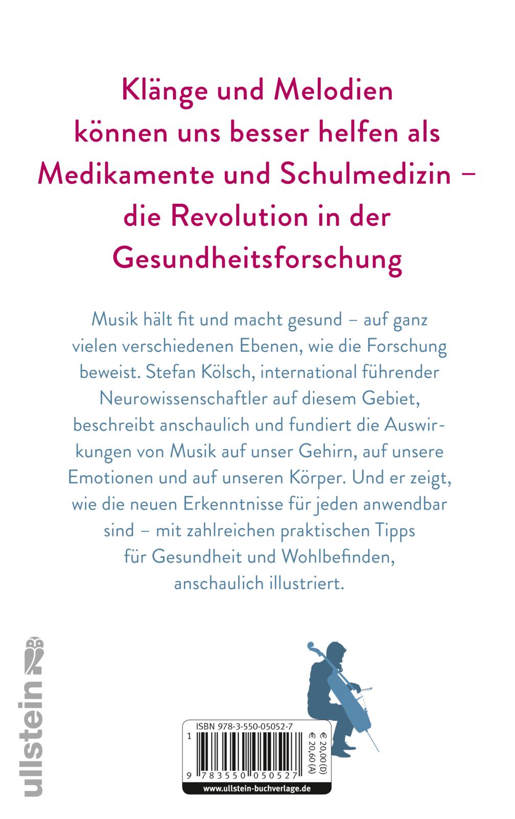 Musik ist nicht nur schön — sie bewahrt auch unsere Gesundheit, hält jung und verbessert den Spracherwerb. Sie hilft bei Schlaganfall, chronischen Krankheiten und Demenz. Sie wirkt geradezu Wunder bei Wachkomapatienten. Die Bedeutung von Klängen und Melodien für unsere Psyche und unseren Körper findet immer mehr Beachtung und ist inzwischen unumstritten. Stefan Kölsch zeigt uns anhand vieler Beispiele aus seinem Forschungsbereich, weshalb Musik in allen Formen eine immer größere Rolle bei der Vorbeugung und Behandlung ganz unterschiedlicher Krankheiten einnimmt, sodass sie inzwischen einen neuen Wissenschaftszweig in der Gesundheitsforschung fundiert. Und er liefert zahlreiche konkrete Tipps, wie jeder von uns mit Musik im Alltag sein Wohlbefinden unterstützen und fördern kann.