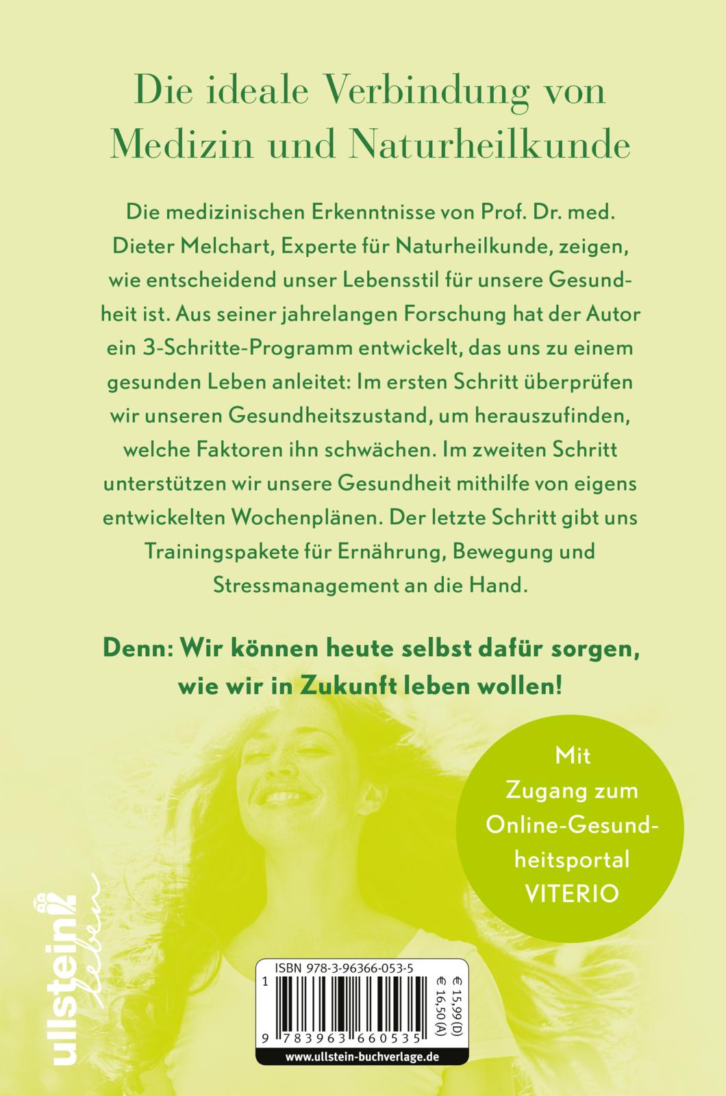 Die medizinischen Erkenntnisse von Prof. Dr. med. Melchart zeigen, wie gesund wir sein können, wenn wir unseren Lebensstil ändern. Aus seiner jahrelangen Forschung hat der Autor ein 3-Schritte-Programm entwickelt, das uns eine Anleitung für ein gesundes Leben bietet. Im ersten Schritt überprüfen wir unseren Gesundheitszustand, um herauszufinden, welche Faktoren ihn schwächen. Im zweiten Schritt unterstützen wir unsere Gesundheit mithilfe von eigens entwickelten Wochenplänen. Der letzte Schritt gibt uns Trainingspakete für Ernährung, Bewegung und Stressmanagement an die Hand.
