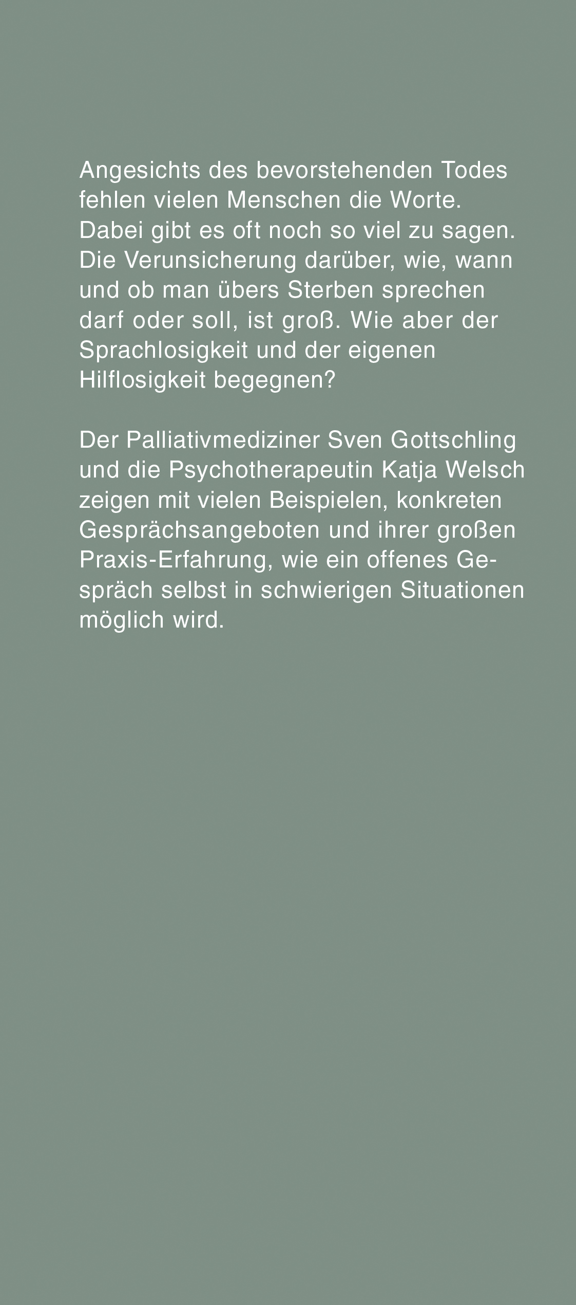 Angesichts des bevorstehenden Todes fehlen vielen Menschen die Worte. Dabei gibt es oft noch so viel zu sagen. Wie aber der Sprachlosigkeit und der eigenen Hilflosigkeit am Sterbebett eines nahen Menschen begegnen? Der Palliativmediziner Sven Gottschling gibt gemeinsam mit der Psychotherapeutin Katja Welsch praktische Hilfestellung in dieser extrem belastenden Situation.