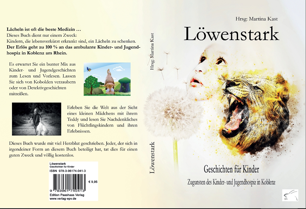 | Schlagworte | Anthologie • Edition Paashaas Verlag • Flüchtlinge • guter Zweck • Hoffnung • Hospiz • Jugendbuch • Kinder • Kinderbuch • Kinderhospiz • Kobolde • Krankheit • Löwe • Märchen • Martina Kast • Spende • Vorlesebuch • Wahre Begebenheit |