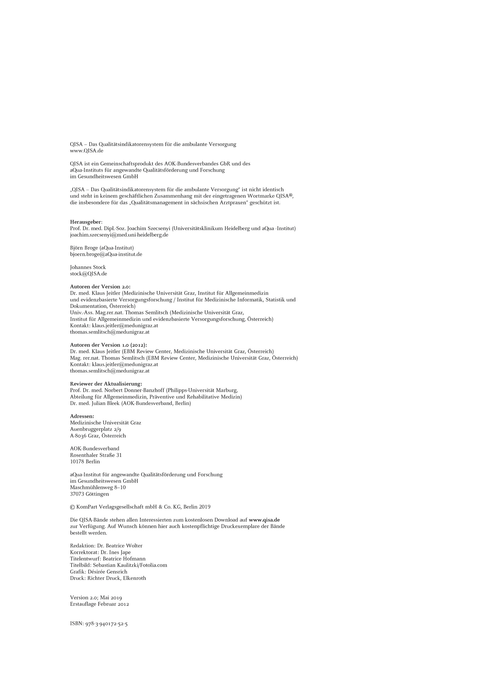 Für die im Mai 2019 erschienene Aktualisierung haben die Autoren die Entwicklung der vorliegenden Evidenz insbesondere anhand der relevanten nationalen und internationalen Leitlinien geprüft und die Indikatoren – wo nötig – modifiziert oder neu formuliert.