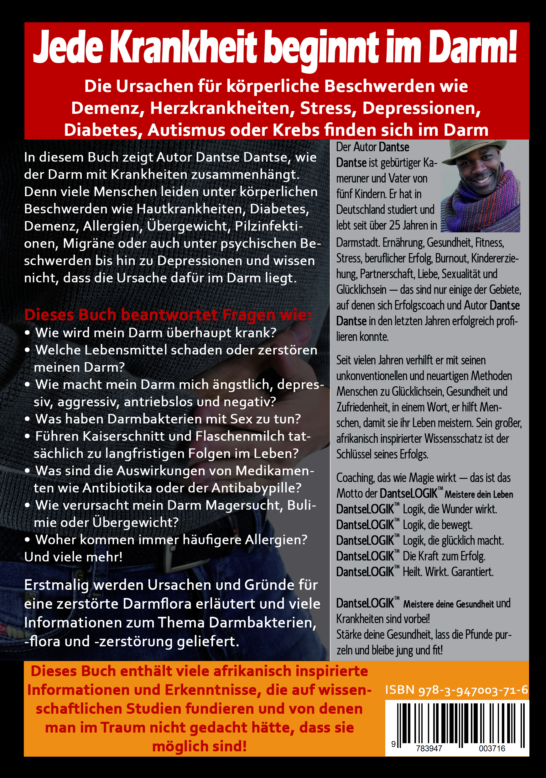 Über das BuchViele Menschen leiden unter körperlichen Beschwerden wie Hautkrankheiten, Diabetes, Demenz, Allergien, Übergewicht, Pilzinfektionen, Migräne oder auch unter psychischen Beschwerden wie Ängsten, Stress, Essstörungen oder Stimmungsproblemen bis hin zu Depressionen und wissen nicht, dass die Ursache dafür im Darm liegt.Der Darm und seine Bakterien entscheiden über unsere psychische VerfassungUm den Darm herum befindet sich eine große Ansammlung von Nervenzellen, die unser gesamtes Fühlen beeinflussen und manipulieren können. Das bedeutet auch, dass unser Darm Hirnkrankheiten wie Depressionen verursachen oder aber auch bekämpfen oder gar heilen kann. Was wir essen, welche Lebensmittel wir zu uns nehmen, beeinflusst die Darmbakterien. Unsere Nahrung entscheidet mit, wie wir uns fühlen, was wir denken, wie gesund wir psychisch sind, was wir wollen, wen wir lieben oder nicht, wie viel Lust wir empfinden, wie gut wir eine Person riechen können. Die Darmflora entscheidet auch über Minderwertigkeitskomplexe, negative Gedanken, schlechte Laune, Antriebslosigkeit und Aggressivität.Viele Heiltraditionen Afrikas schreiben dem Darm große Bedeutung für das psychische Wohlbefinden zu. Wie es in der afrikanischen Medizin gelehrt wird, können Darmbakterien unser gesamtes Nervensystem, und somit auch unser Gehirn, mit gezielten Informationen, seien sie gut oder schlecht, manipulieren. Sie übernehmen so die Kontrolle über unser Verhalten, unser Denken, unsere Persönlichkeit, unser Liebesgefühl und unsere Handlungen. Und je nach Informationen, die das Gehirn von ihnen bekommt, fühlen wir uns gut, glücklich, stark und mutig oder niedergeschlagen, müde, negativ, aggressiv und schlechtgelaunt. Das bedeutet auch, dass du durch eine entsprechende Ernährung, die diese Darmbakterien fördert, entscheiden kannst, wie es dir geht. Wir können unsere Darmbakterien züchten, damit sie uns Gutes oder aber auch Schlechtes tun.In diesem Buch erfährst du:-Wie der Darm mit Krankheiten zusammenhängt-Wie und warum wird der Darm überhaupt krank? -Was zerstört die Darmflora und schränkt die Funktionsfähigkeit deiner guten und wichtigen Darmbakterien ein? -Was fördert die Ausbreitung der schlechten und krank machenden Bakterien? -Welche Krankheiten werden durch einen gestörten Darm ausgelöst oder gefördert?-An welchen Anzeichen du erkennst, dass dein Darm krank ist-Wie ein kranker Darm deine Stimmung beeinflusst und dich müde, depressiv und unglücklich macht-Warum du mit einer gestörten Darmflora nicht abnehmen kannst -Was Zigaretten, die Vaginalflora deiner Mutter, Stress und Abendbrot mit einem kranken Darm zu tun haben-Und vieles mehrDu bekommst in diesem Buch viele afrikanisch inspirierte Informationen und Erkenntnisse, die immer mehr von der Wissenschaft bestätigt werden und von denen du im Traum nicht gedacht hättest, dass sie möglich sind. Nach der Lektüre wirst du dich in deinen Darm verlieben, da die Liebe auch von dort kommt. Denn die Liebe geht wirklich durch den Magen.