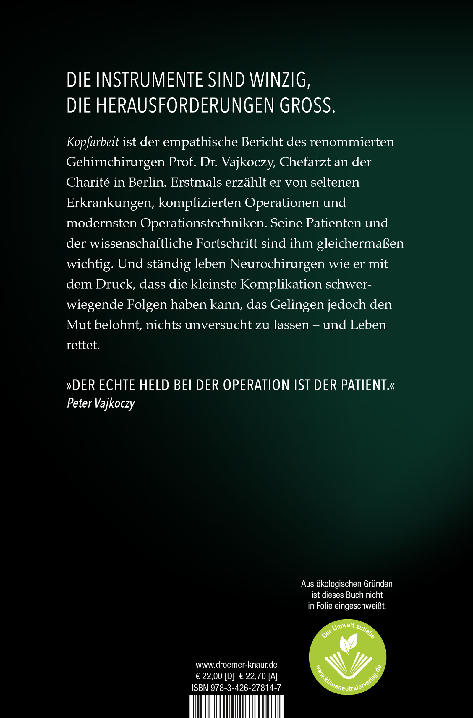 In seinem Buch berichtet Prof. Dr. Vajkoczy von außergewöhnlichen Methoden wie dem Operieren bei vollem Bewusstsein und vom unerbittlichen Kampf gegen die Uhr, zum Beispiel wenn er einen Bypass im Gehirn legt – ist die Blutzufuhr im Gehirn zu lang unterbrochen, erleidet der Patient einen Schlaganfall.
