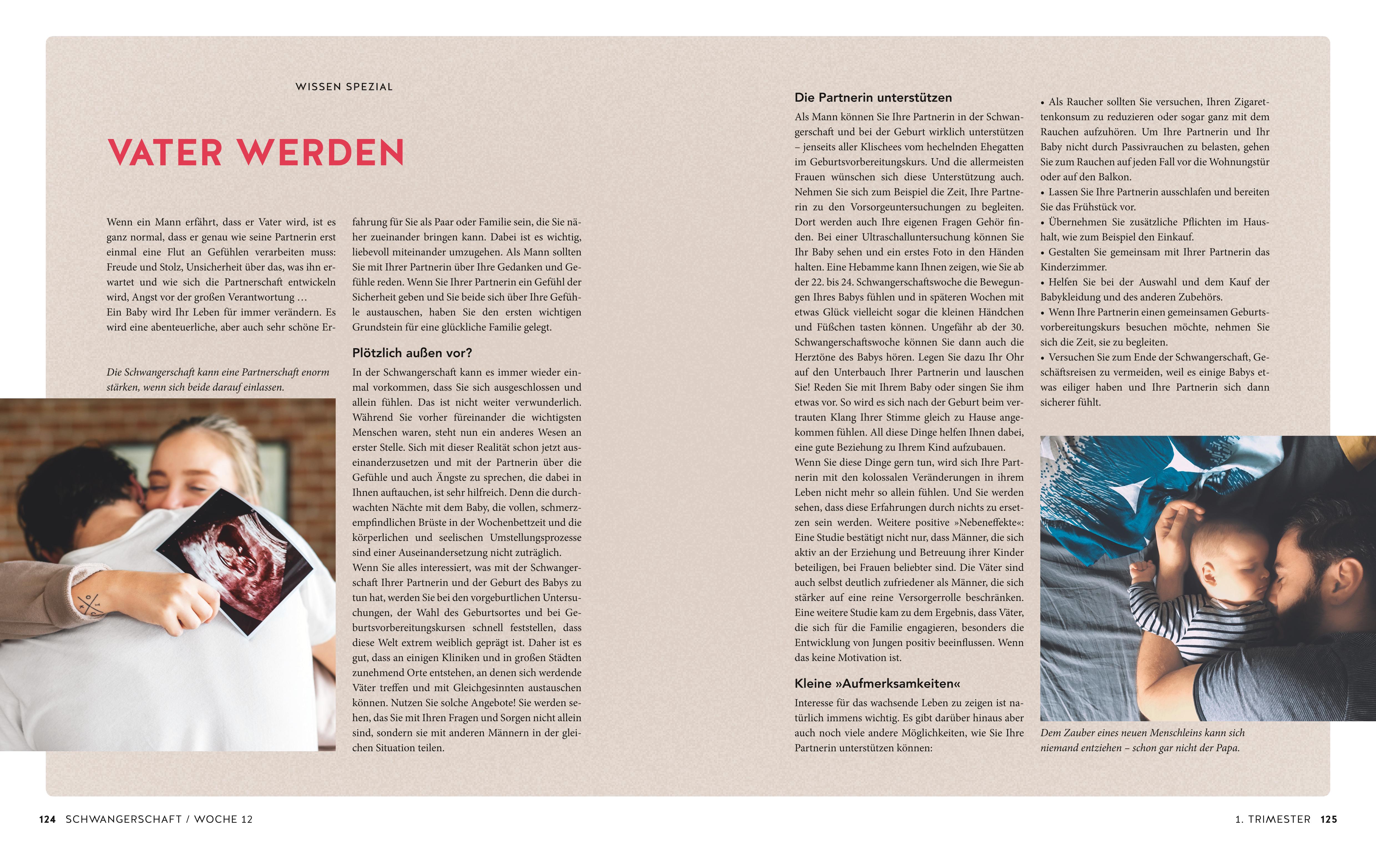 Dieser umfassende und bilderreiche Ratgeber gibt werdenden Eltern an jedem Tag der Schwangerschaft Orientierung mit wichtigen Informationen und nützlichen Tipps aus der Hebammen- und ärztlichen Praxis. Und er macht Freude: mit berührenden Fotos direkt aus dem Uterus. Beeindruckende Aufnahmen zeigen genau, wie sich das Baby entwickelt vom Embryo bis hin zur Geburt. Moderne Illustrationen veranschaulichen die Veränderungen im Körper der Frau, Vorsorgeuntersuchungen und den Geburtsvorgang. Auch mögliche Beschwerden, Tipps fürs Wohlbefinden sowie alles Wichtige rund ums Wochenbett werden ausführlich und verständlich erklärt. Ein fundierter und bewegender Ratgeber für alle werdende Eltern.