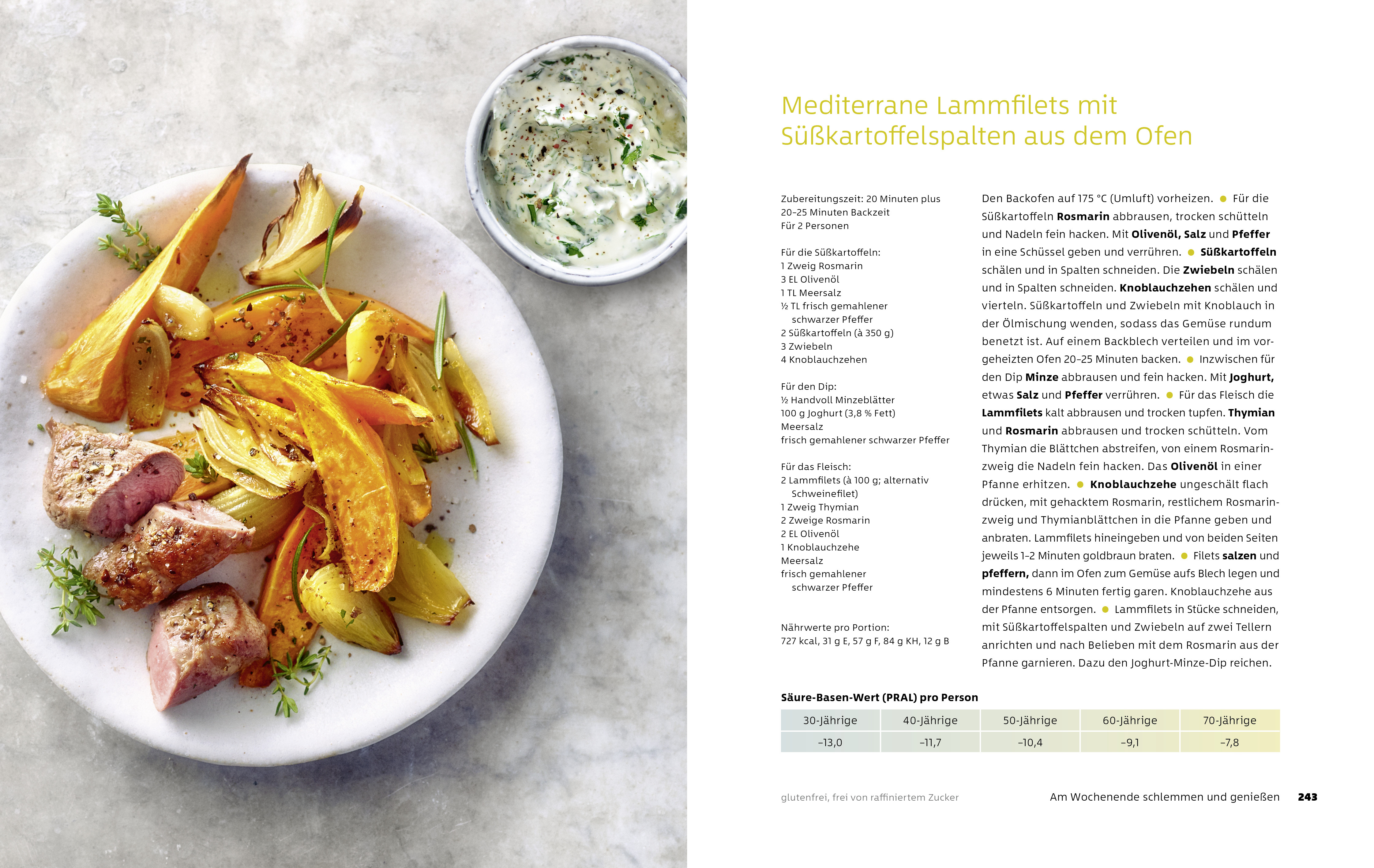 Zusätzlich finden Sie im Buch eine Tabelle mit den PRAL-Werten einzelner Lebensmittel. So gewinnen Sie einen schnellen Überblick, welche Lebensmittel säure- und welche basenüberschüssig sind. Ergänzt wird diese Tabelle durch eine ausführlich PRAL-Tabelle mit den verschiedenen Altersgruppen im Web. Den Link finden Sie im Buch auf Seite 87 und in unserem Mengenrechner auf: www.mengenrechner.de.