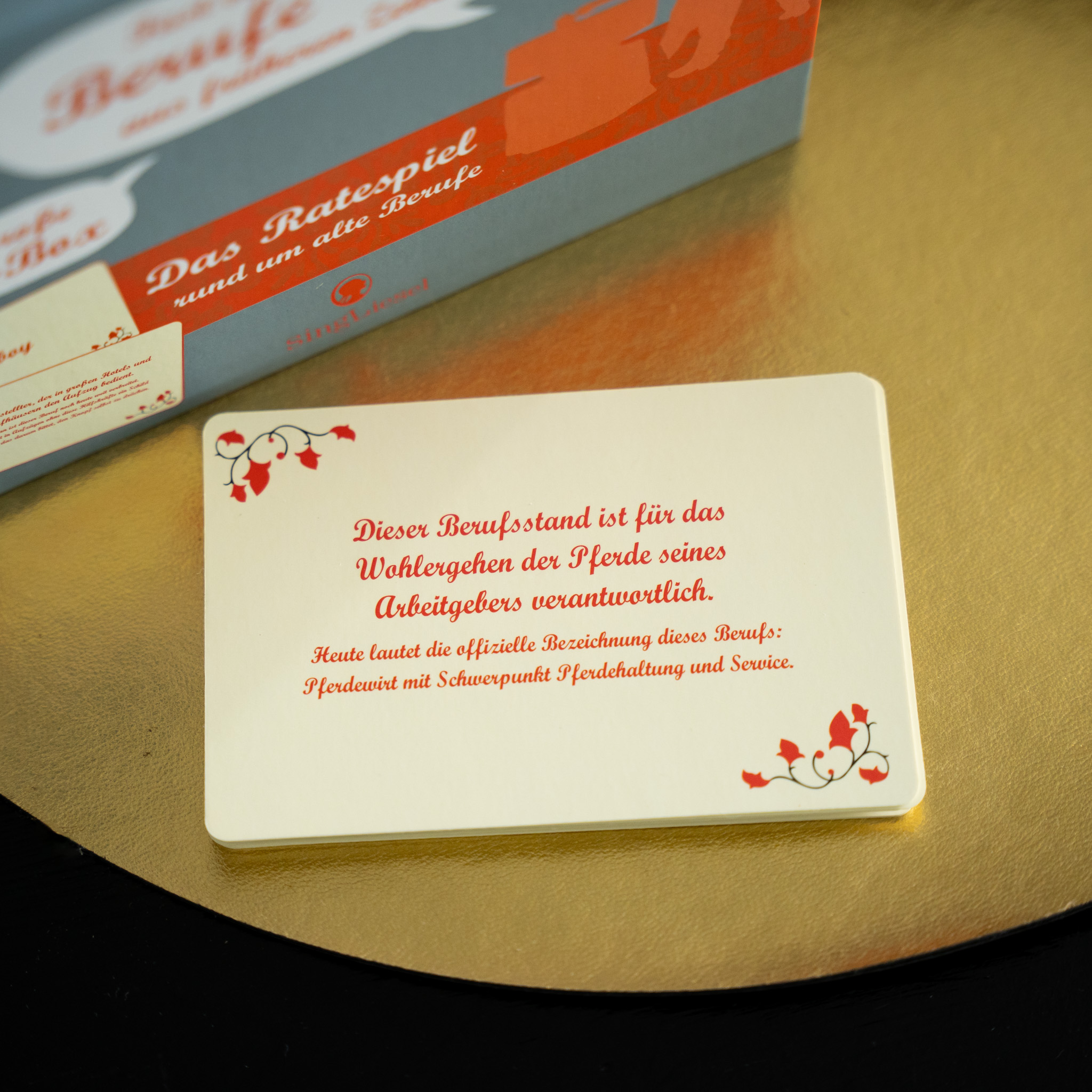 Die nostalgische Rate-Box enthält 100 Karten mit fast vergessenen Berufen aus früheren Zeiten.
