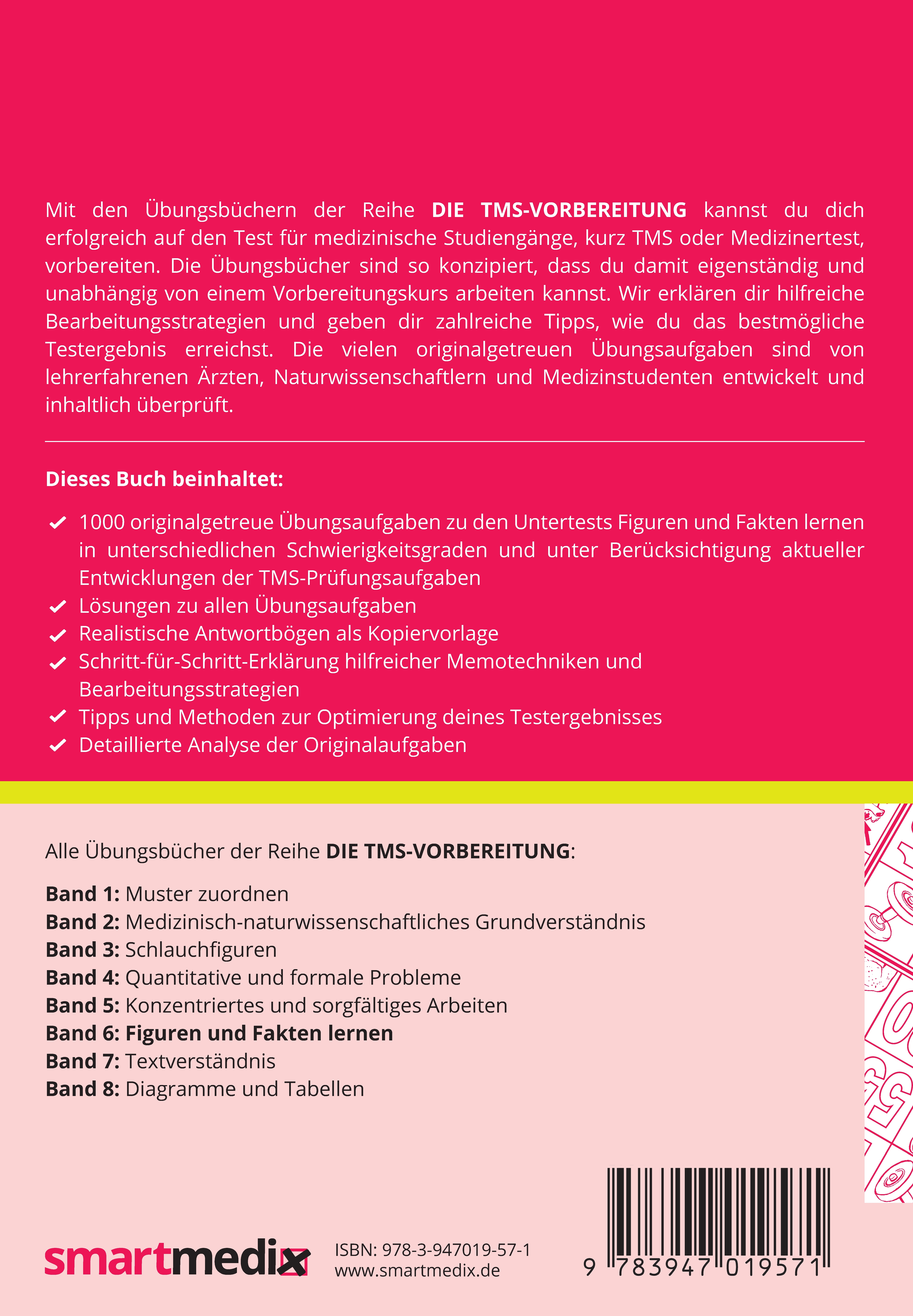 - 1000 originalgetreue Übungsaufgaben zu den Untertests Figuren und Fakten lernen in unterschiedlichen Schwierigkeitsgraden und unter Berücksichtigung aktueller Entwicklungen der TMS-Prüfungsaufgaben,