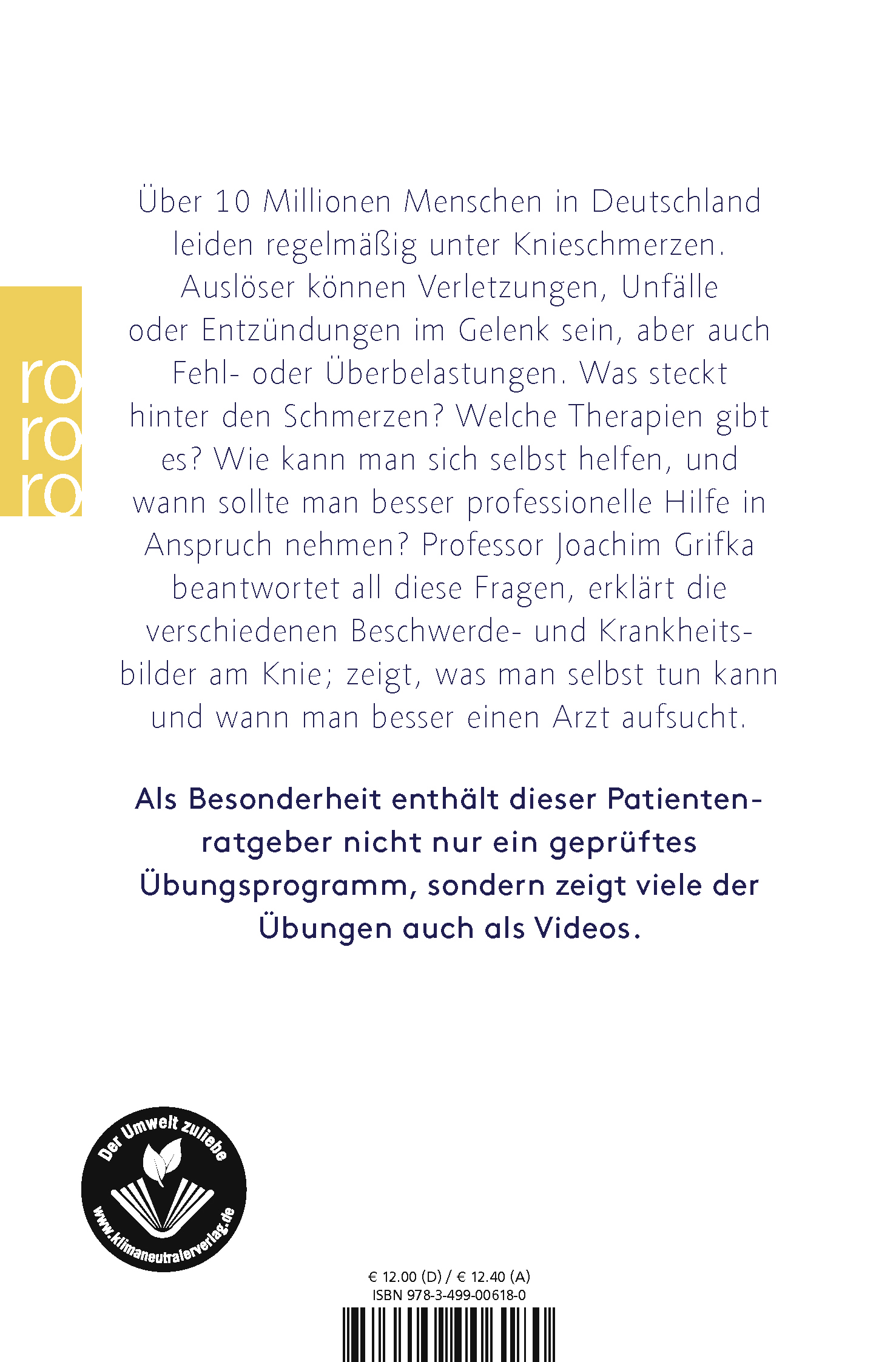 lt;p>Über 10 Millionen Menschen in Deutschland leiden regelmäßig unter Knieschmerzen. Auslöser können Verletzungen, Unfälle oder Entzündungen im Gelenk sein, aber auch Fehl- oder Überbelastungen. Was steckt hinter den Schmerzen? Welche Therapien gibt es? Wie kann man sich selbst helfen, und wann sollte man besser professionelle Hilfe in Anspruch nehmen? Professor Joachim Grifka beantwortet all diese Fragen, erklärt die verschiedenen Beschwerde- und Krankheitsbilder am Knie; zeigt, was man selbst tun kann, und wann man besser einen Arzt aufsucht.