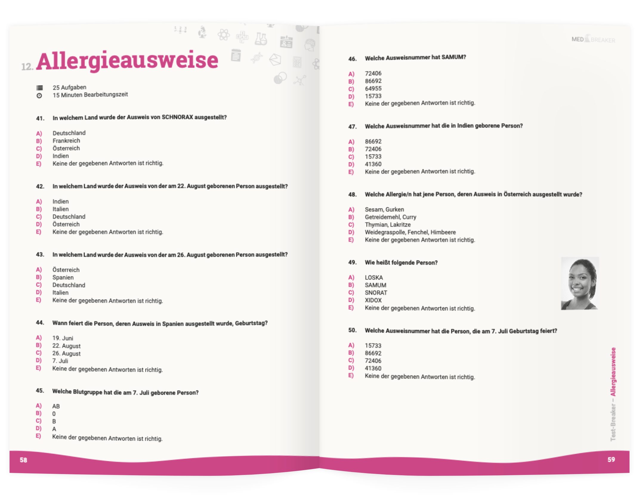| Schlagworte | Allergieausweise • Aufnahmeprüfung • Aufnahmeprüfung Medizinstudium • Aufnahmeverfahren • Aufnahmeverfahren Medizin • Auswahlverfahren Medizin • Basiskenntnistest Medizinische Studien • Bewerbunsgverfahren Medizinstudium • Biologie • BMS • BMSbreaker • BMS-Breaker • Chemie • Draht biegen • Emotionen Erkennen • Extreme • Figuren Zusammensetzen • Fit für die Uni • Formen spiegeln • Gedächtnis- und Merkfähigkeit • get-to-med • gettomed • Humanmedizin • Implikationen erkennen • Lernmaterialien • Lernmaterialien Medizin • Lernskript • Mathematik • mechanische Fähigkeiten und Fertigkeiten • MEDAT • MedAT 2021 • medat 2022 • MedAT Bücher • medat-formel • MedAT Formel • MEDAT-H • MedAT Hero • medat testsimulation • MedAT Vorbereitung Buch • MedAT-Z • Med-Breaker • MedBreaker • MedGurus • Medinaut • Medizinaufnahmetest • Medizin Aufnahmetest • Medizinauswahlverfahren • Medizinertest • Medizinertest Vorbereitung • Medizin studieren • Medizinstudium • Medizinstudium Deutschland • Medizinstudium Österreich • Medizintest • Physik • Platz 1 • sozial-emotionale Kompetenzen • Soziales Entscheiden • Studienplatzvergabe • Studymed • Test • testbreaker • Test-Breaker • Testsimulation • Textverständnis • Tipps rund ums Studieren • Übungen • Vorkurs Medizin • Wortflüssigkeit • Zahlenfolgen • Zahnmedizin • Zulassungstest Medizinstudium |