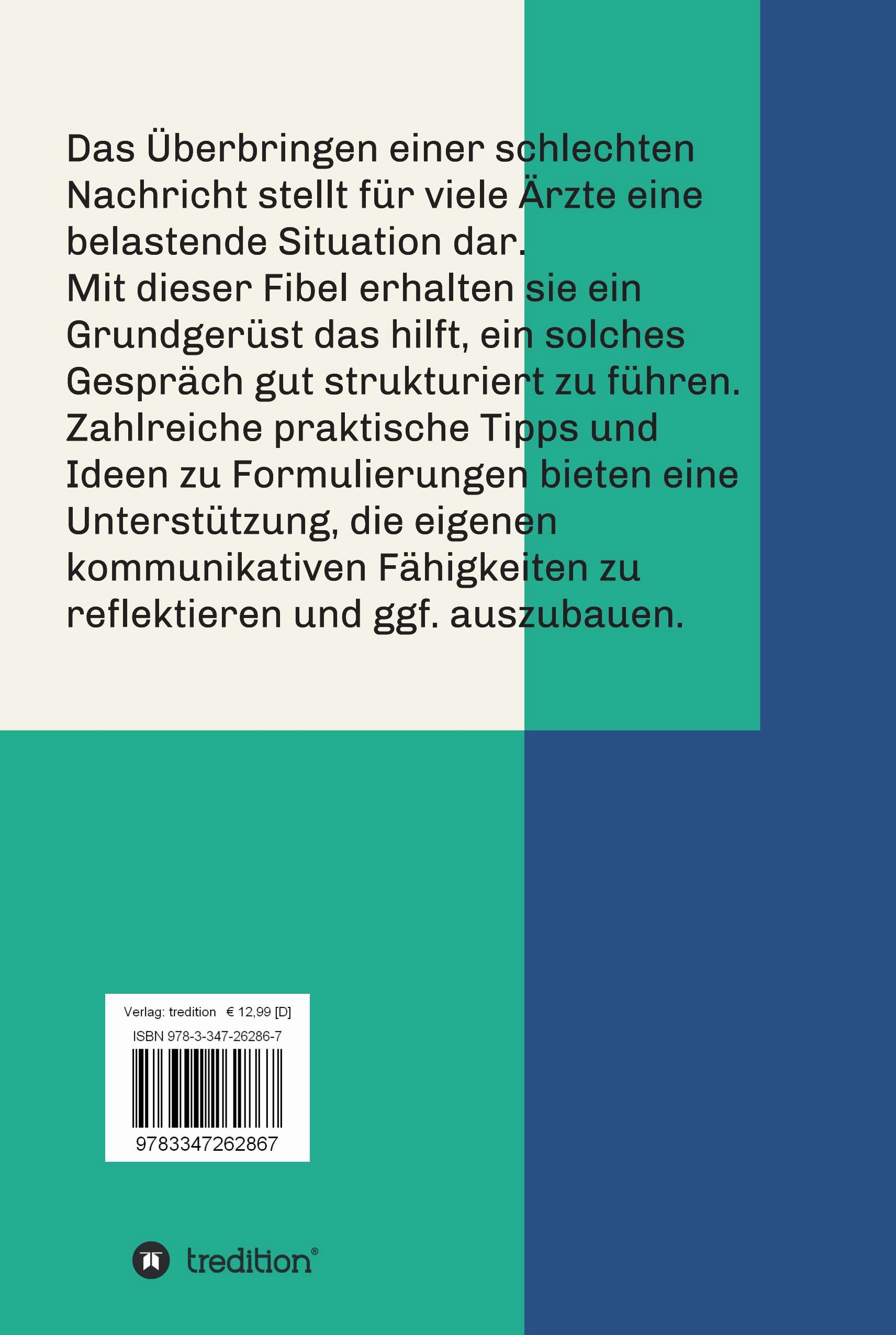 Das Überbringen einer schlechten Nachricht stellt für viele Ärzte eine belastende Situation dar. Mit dieser Fibel erhalten sie ein Grundgerüst das hilft, ein solches Gespräch gut strukturiert zu führen. Zahlreiche praktische Tipps und Ideen zu Formulierungen bieten eine Unterstützung, die eigenen kommunikativen Fähigkeiten zu reflektieren und ggf. auszubauen.