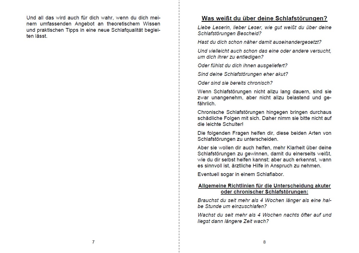 Neben der nötigen Theorie, um deine Schlafprobleme zu verstehen, bekommst du also wirksame und daher alltagstaugliche Tipps, die dir helfen, endlich wieder gut ein-, aber auch entspannt weiter- und oft sogar durchzuschlafen; und so morgens erholter in den neuen Tag zu starten.