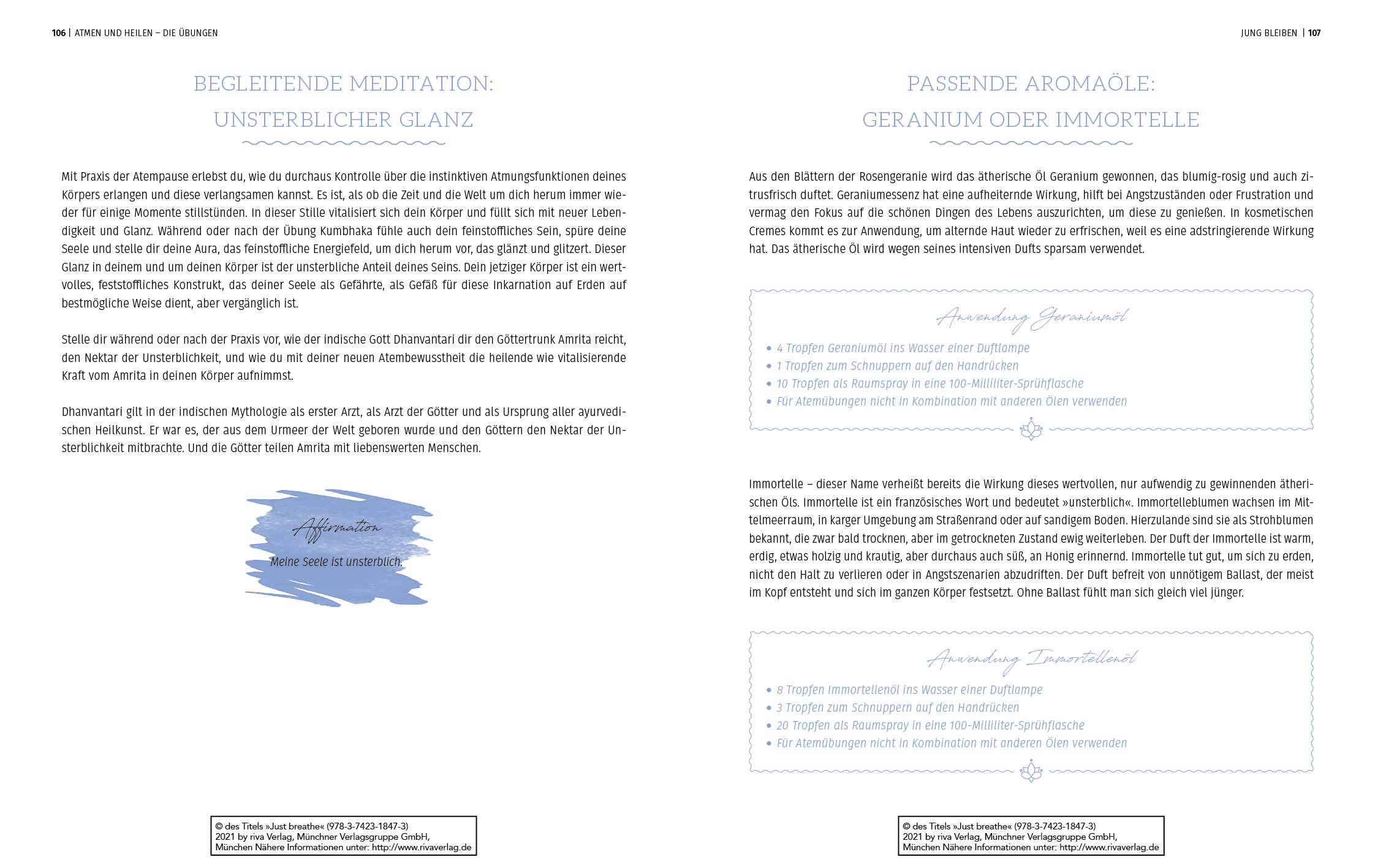 Die Anleitungen werden durch Meditationen, Affirmationen und Empfehlungen für die Anwendung ätherischer Öle begleitet. Finde so zu deiner inneren Mitte zurück, unterstütze Heilungsprozesse und verbessere deine Gesundheit ganzheitlich.