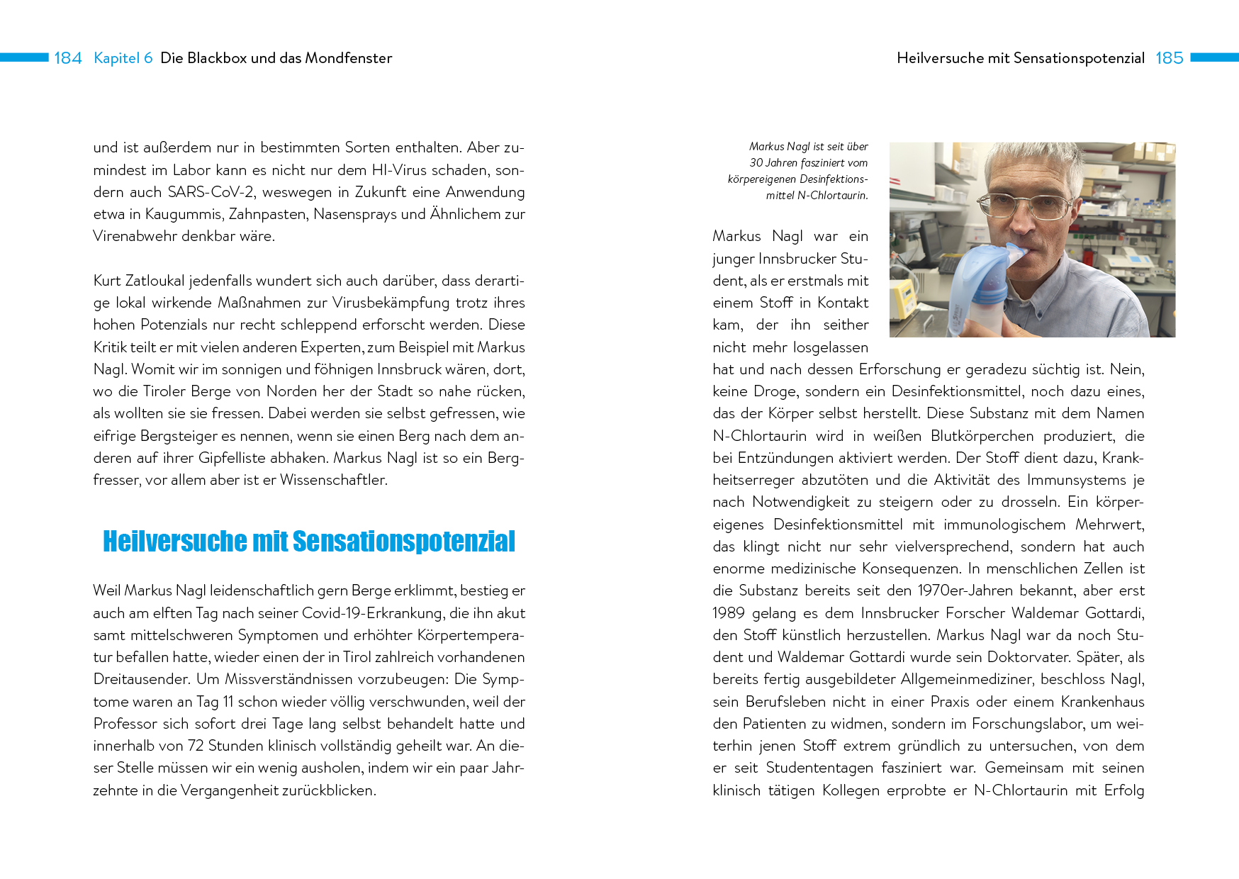 Im Zuge seiner Arbeit an einer TV-Dokumentation ist er auf Mittel und Maßnahmen gestoßen, die als Virenkiller - nicht nur in der aktuellen Pandemie - fahrlässig unterschätzt werden und das Potenzial zum Gamechanger haben. Er traf einen Protagonisten, der zwar kein Impfgegner ist, aber behauptet, eine alternative, einfache Methode entwickelt zu haben, die SARS-CoV-2 stoppen und oft auch Covid-19 heilen soll. Was zunächst wie die Theorie eines Spinners klang, entpuppte sich als Konzept, auf das mittlerweile zahlreiche führende Experten in Deutschland und Österreich aufmerksam geworden sind. Was genau sich dahinter verbirgt, verrät Christian Kugler in seinem Buch. Damit gibt er nicht nur spannende Einblicke in neue Forschungsansätze, sondern bietet auch jedem Einzelnen die Möglichkeit, sich selbst zu schützen und vielleicht sogar von Covid-19 zu heilen.