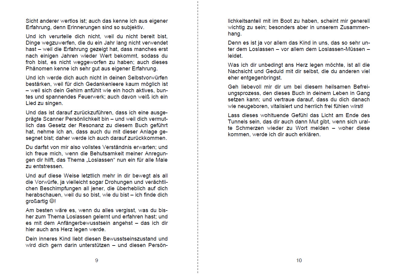 Dann wird dir dieses Buch wohltun und sich sehr heilsam auf dich und dein Leben auswirken; weil es dir einerseits hilft, zu differenzieren - und andererseits dich von dem, was du wirklich nicht mehr brauchst, mit Leichtigkeit zu lösen; aber auch destruktive Menschen gehen zu lassen, die dir nicht mehr gut tun und mit denen die Beziehung abgeschlossen werden möchte.