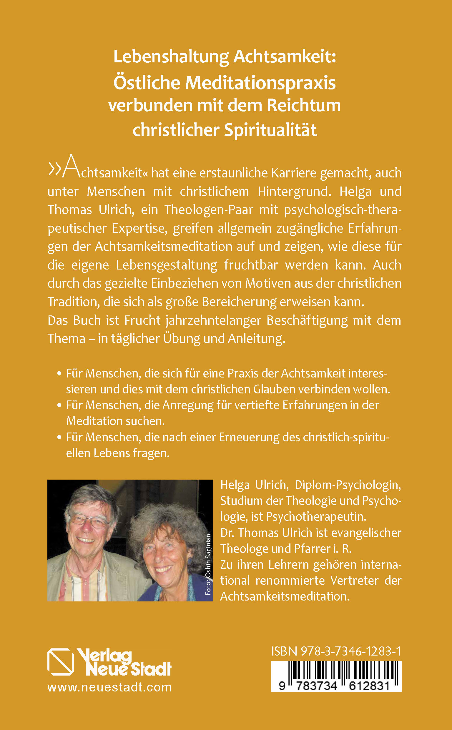 Helga Ulrich, Diplom-Psychologin, Studium der Theologie und Psychologie, Psychotherapeutin. Thomas Ulrich, evangelischer Theologe, Pfarrer i. R. Beide üben seit mehreren Jahrzehnten die Achtsamkeits- Meditation, leiten eine offene Meditationsgruppe in Berlin und geben Einführungskurse, früher auch Retreats. Zu ihren Lehrern gehören prominente Vertreter dieser Meditationsrichtung wie Jack Kornfield, Joseph Goldstein, Fred von Allmen, Christopher Titmuss.